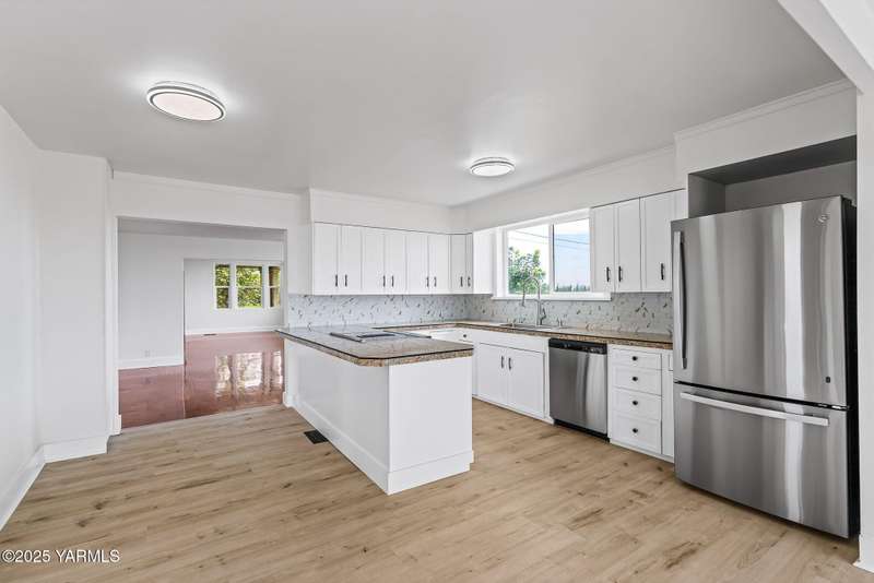 Looking for space without the upkeep? This beautifully updated 1918 home offers the perfect balance of room to breathe and low-maintenance living. Set on a flat, 1-acre parcel surrounded by peaceful orchards, you'll enjoy stunning views of Mt. Adams and Mt. Rainier. Inside, the charm of the original hardwood floors shines through, now fully refinished, and complemented by new flooring, windows, paint, and a stylishly remodeled kitchen and bathroom. The roof has been professionally treated, and the home features updated appliances, giving you peace of mind and modern comfort. With fresh paint inside and out, this home is truly move-in ready. Plus, the massive 1,440 sq ft detached garage provides endless options for storage, hobbies, or even a shop. Whether you're looking for elbow room, privacy, or just a slower pace surrounded by natural beauty, this property delivers--all with minimal maintenance required. Come enjoy a quiet country feel just minutes from town.The two bedrooms in the lower level are non-conforming