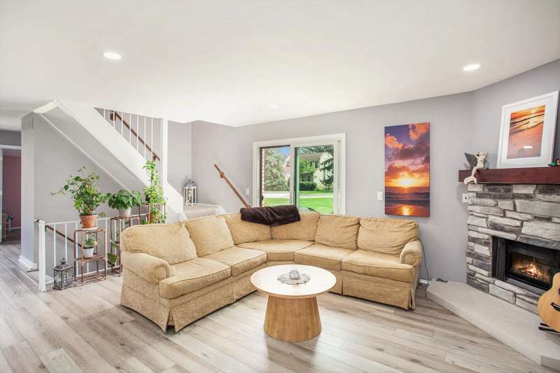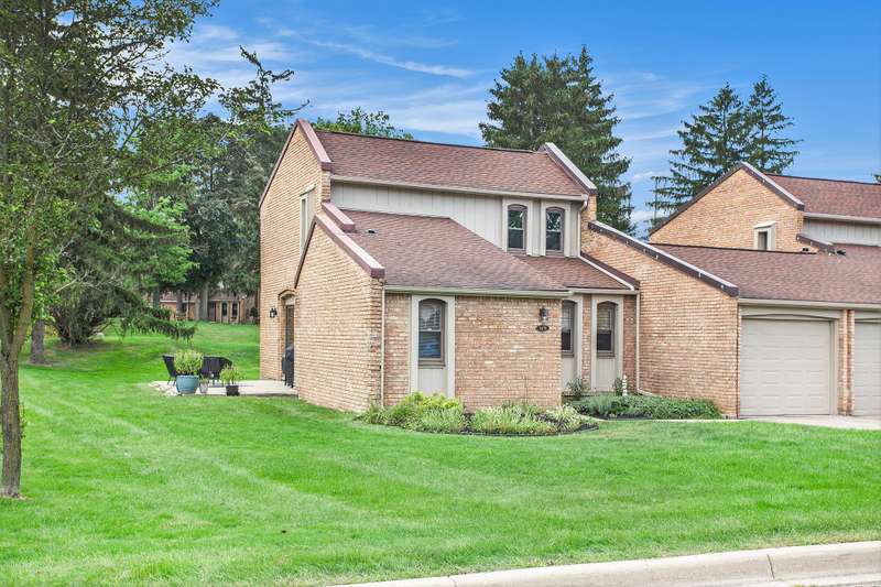Welcome home to this charming 3 bed, 2 bath condo offering a bright and inviting floor plan! Main floor includes an updated kitchen that features warm wood cabinetry, stainless steel appliances, tile backsplash, and plenty of prep space. The spacious living room is perfect for relaxing or entertaining, complete with a cozy fireplace, neutral tones, and sliding door access to the private patio overlooking lush green space. Spacious bedroom and full bath. Upstairs, you’ll find 2 bedrooms and updated a bath for comfort and convenience. With its classic brick exterior, attached garage, and well-maintained grounds, this condo combines style, function, and easy living—all in a desirable community setting. Brand new Door Wall 2024, Carpet 2024, Furnace/Humidifier, 2025, Central Air 2025, Freshly painted 2025, Newly Vinyl Flooring throughout main level.