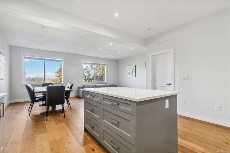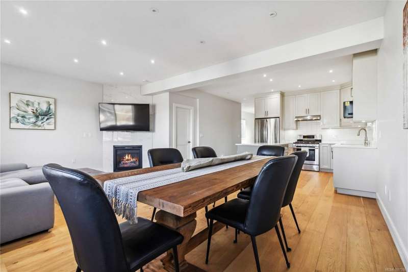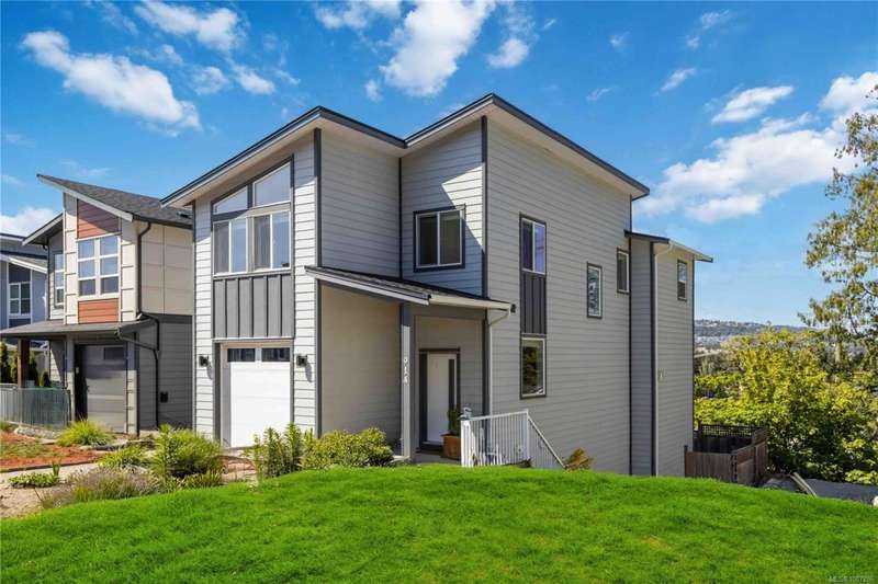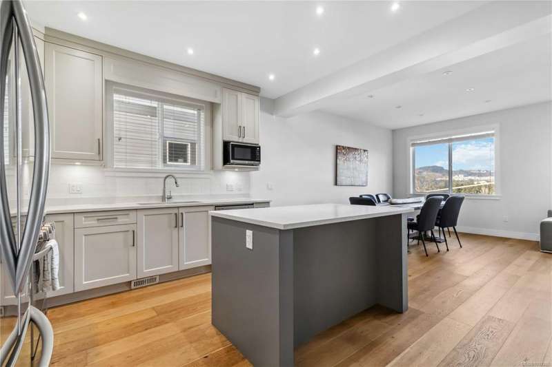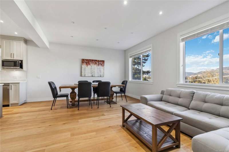 OPEN HOUSE - SAT. OCT 18TH 1-3. BELOW ASSESSED VALUE - Discover incredible value in this immaculate 4-bed, 4-bath home offers 2,500+ sq. ft. across three levels. Unlike many others, it enjoys a lovely Langford Valley view filling the home with natural light. Shows like new, with a stylish kitchen featuring acrylic cabinets, quartz countertops, stainless steel appliances, a farmhouse sink, and high-end finishes. The spacious primary suite boasts a walk-in closet and a beautifully appointed 4-piece ensuite. Built for efficiency and comfort, it includes a ducted heat pump, gas fireplace and stove, and on-demand hot water. The lower level has suite potential with plumbing ready for a kitchen. On an easy-care lot, just a 2-minute walk to the bus stop and within 2 km of Westshore's top amenities. Quick access to Highway 1 for effortless commuting. A rare find offering exceptional value! Don't miss viewing this home, you will be pleasantly surprised. Quick possession possible.