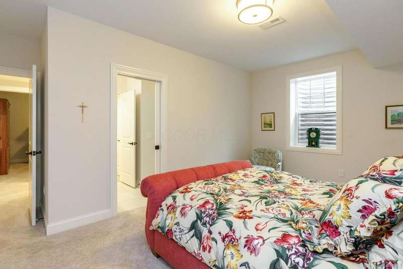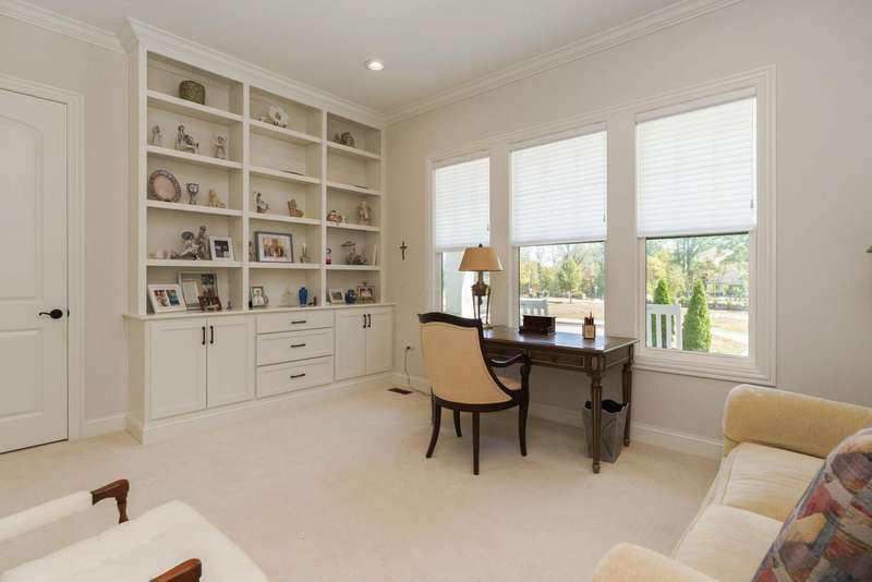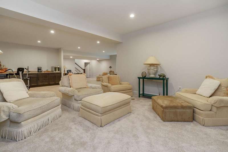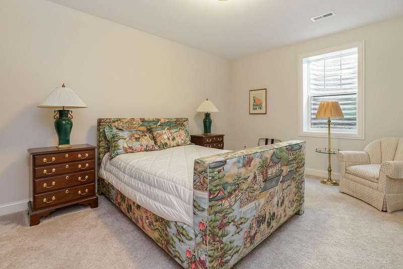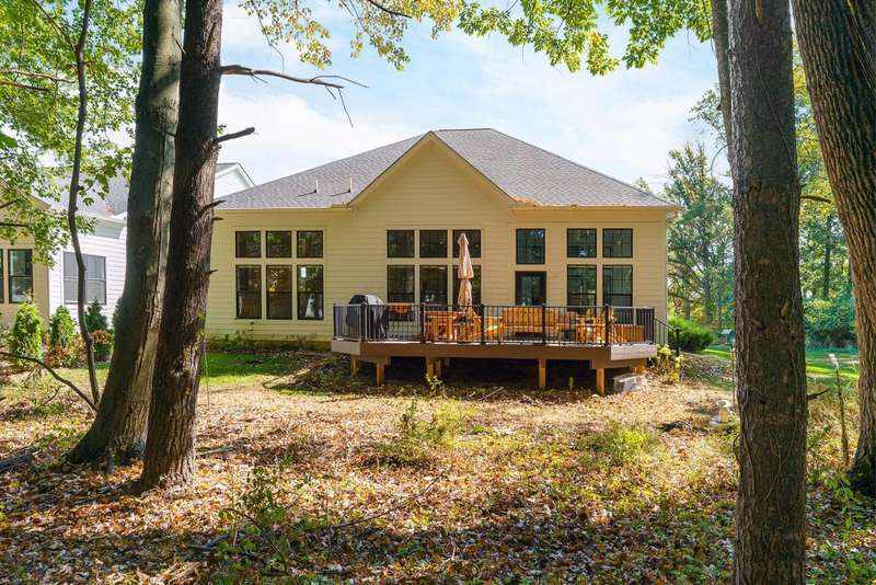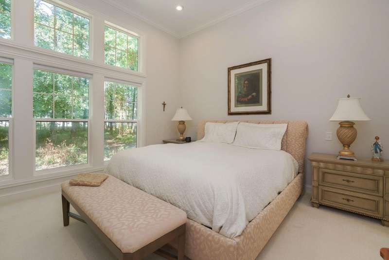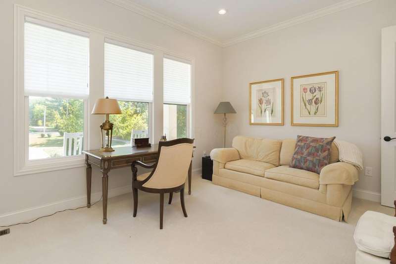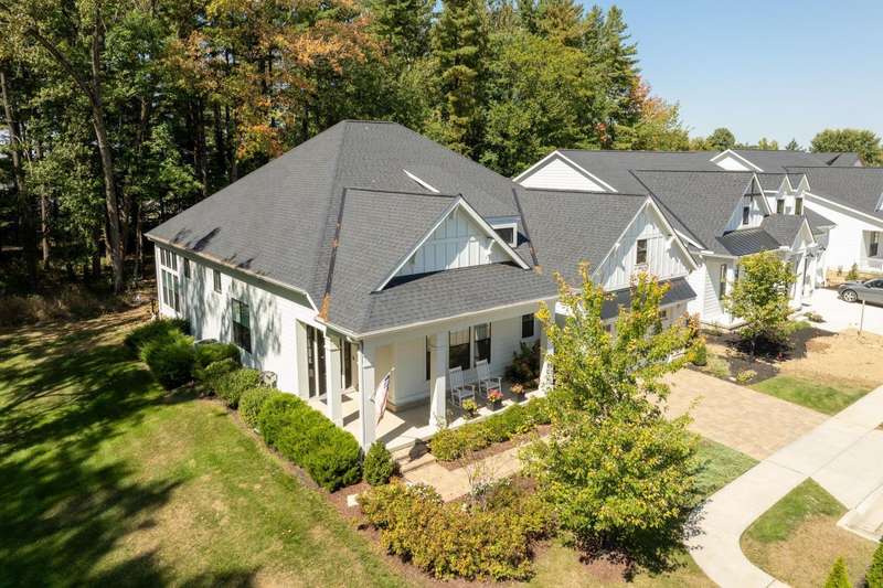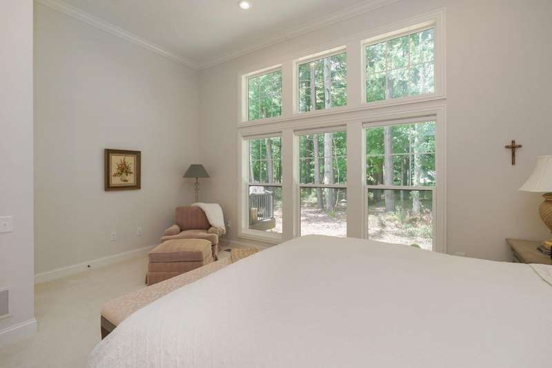 Newer custom-built Bob Webb patio home, perfectly situated on a private wooded lot with tranquil pond views and no neighbors to the south. The light-filled open floor plan showcases a first-floor primary suite and a versatile first-floor office with built-in bookshelves, which could also serve as a bedroom with a walk-in closet and access to a full bath. A second pocket office adds convenience and functionality. The sunroom, wrapped in walls of windows, opens seamlessly to the deck. The lower level extends the living space with two bedrooms, each with walk-in closets, connected by a Jack & Jill bath. A spacious rec room with egress windows and abundant natural light features a walk-up wet bar with beverage refrigerator???perfect for entertaining. Additional highlights include an oversized two-car garage with space for a workshop and extra storage.