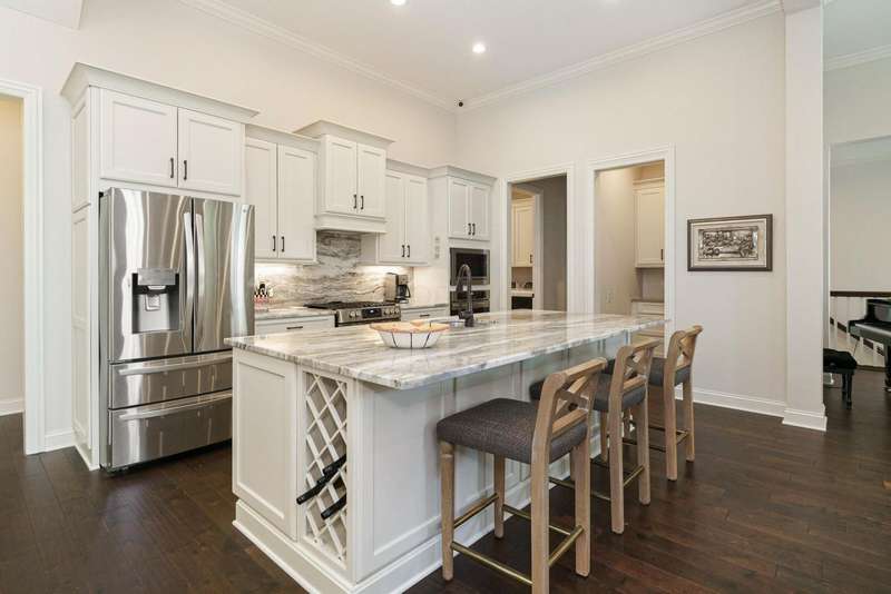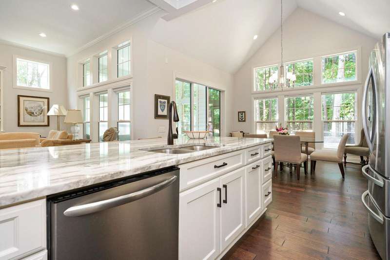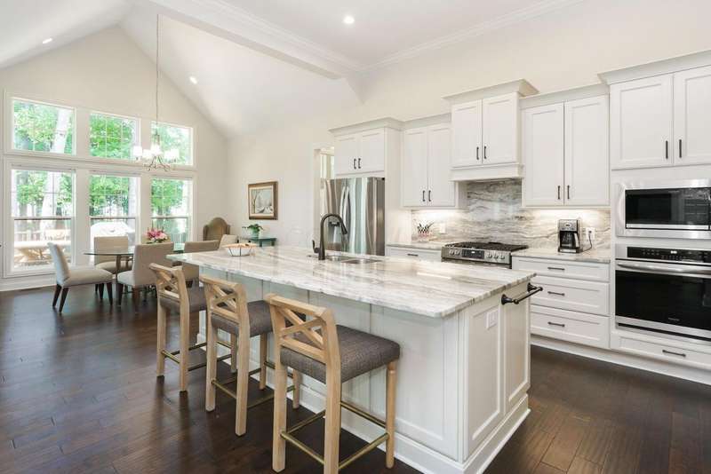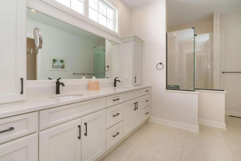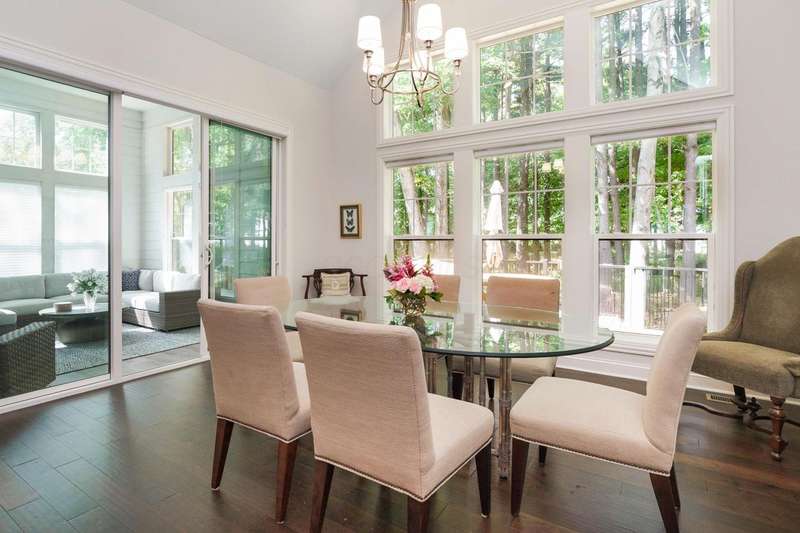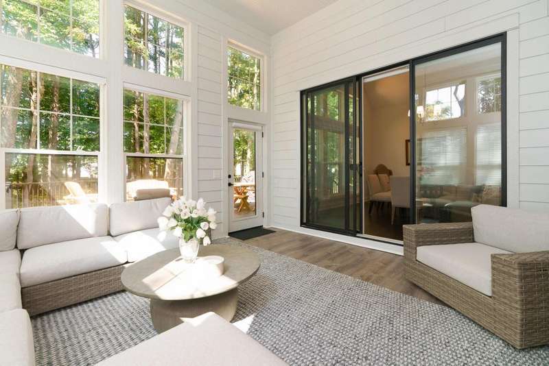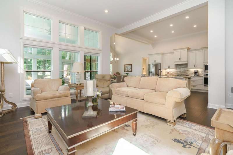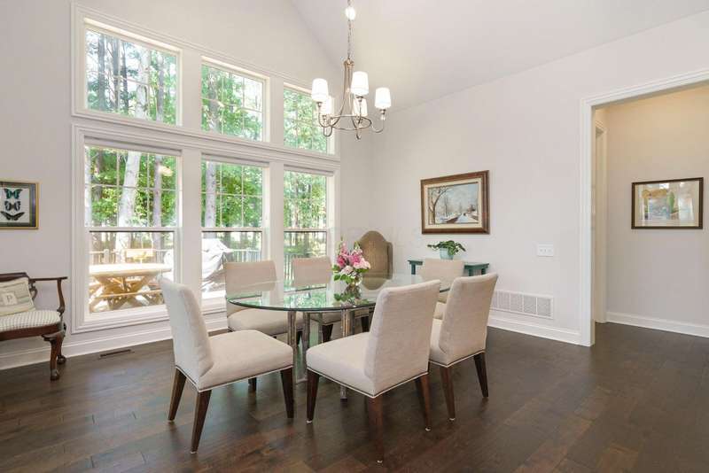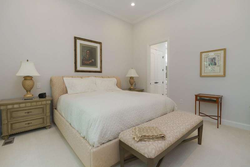 Newer custom-built Bob Webb patio home, perfectly situated on a private wooded lot with tranquil pond views and no neighbors to the south. The light-filled open floor plan showcases a first-floor primary suite and a versatile first-floor office with built-in bookshelves, which could also serve as a bedroom with a walk-in closet and access to a full bath. A second pocket office adds convenience and functionality. The sunroom, wrapped in walls of windows, opens seamlessly to the deck. The lower level extends the living space with two bedrooms, each with walk-in closets, connected by a Jack & Jill bath. A spacious rec room with egress windows and abundant natural light features a walk-up wet bar with beverage refrigerator???perfect for entertaining. Additional highlights include an oversized two-car garage with space for a workshop and extra storage.