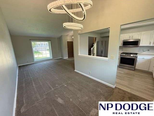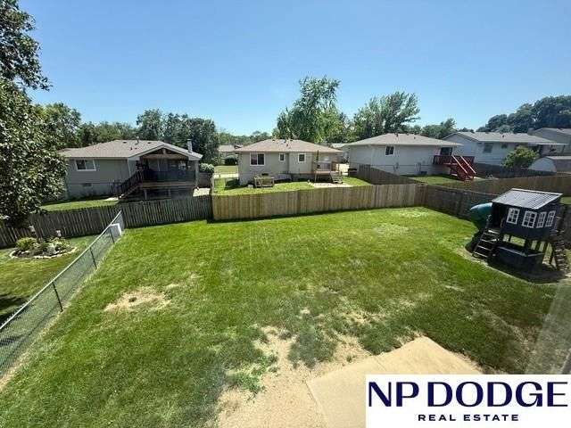 Open Sunday July 13th 1:00 to 2:30. Discover this delightful tri level home that includes 3 bedrooms, 3 baths, 2 car garage, and finished basement. White kitchen with an abundance of countertops. The cozy living room located off the garage, has a fireplace and sliding door for backyard access. The backyard is Fully fenced. Basement Includes a full bathroom, egress window, and two non conforming rooms perfect for office space, a hobby room, play area, or additional storage. This tri-level is in a prime location short distance to Standing bear Lake, tranquility Park trails, grocery stores and all your shopping needs. Easy access to Maple, Fort Street and interstate 680.