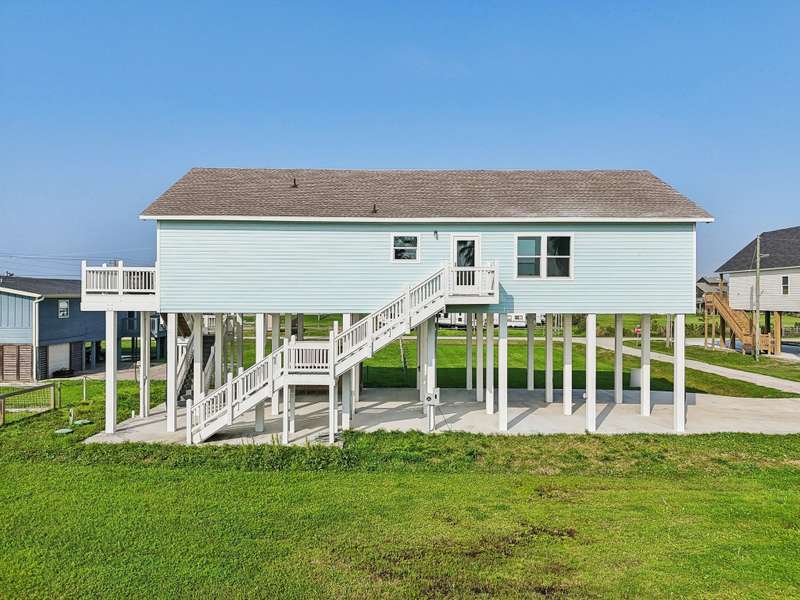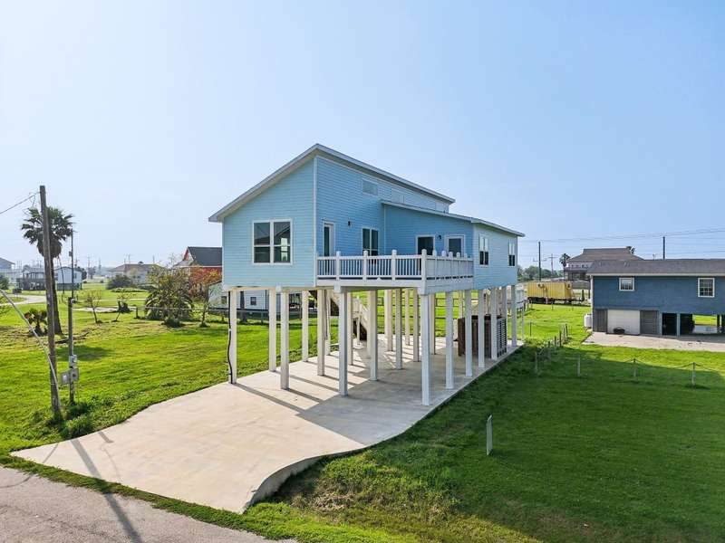 Live the laid-back Galveston lifestyle at 2115 Seahorse Lane — a beautifully built 2022 beach home just minutes from the shoreline in Crystal Beach. With 3 spacious bedrooms, 2 full baths, and an open-concept layout, this coastal retreat offers the perfect setup for personal use or a high-performing Airbnb. Enjoy ocean breezes from the balcony, host friends in the oversized living area and kitchen, and take advantage of boat/RV parking and a 3-car carport. Built on stilts for durability and extra storage, the home features vinyl plank flooring, high ceilings, and thoughtful finishes throughout. Whether you're unwinding after a day on the beach, exploring the peninsula, or offering guests the perfect Gulf Coast getaway, this property delivers flexibility, comfort, and charm — all with no HOA and easy access, A true investment in lifestyle and income potential.