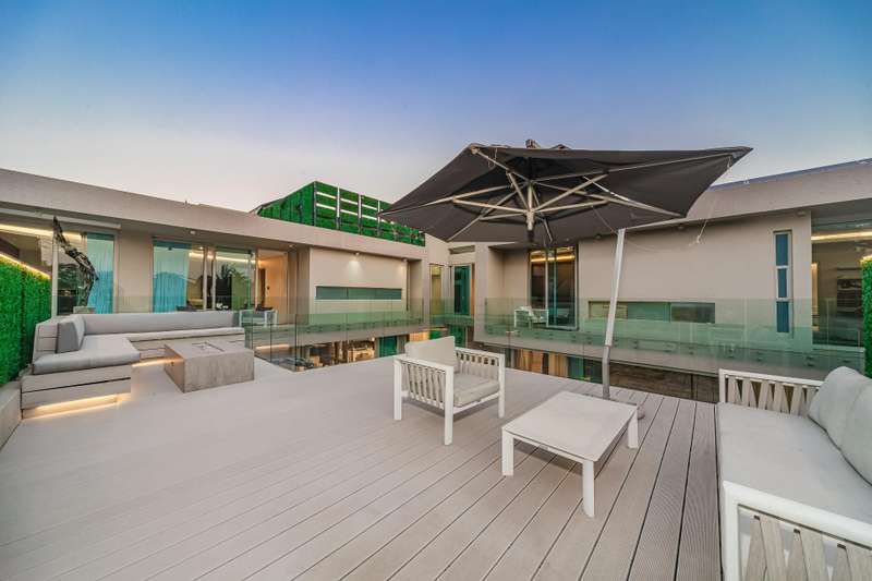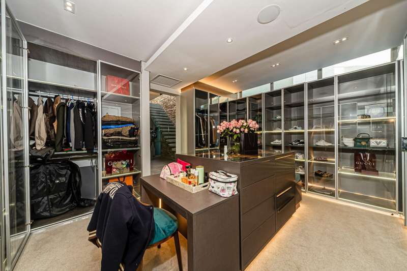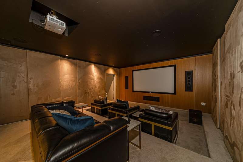 Descend via the lift to the basement, revealing a world of exclusive leisure. The garage accommodates up to five cars, while the private underground bar area serves as an ideal man cave. Complementing this is a state-of-the-art cinema room, perfect for entertainment aficionados.