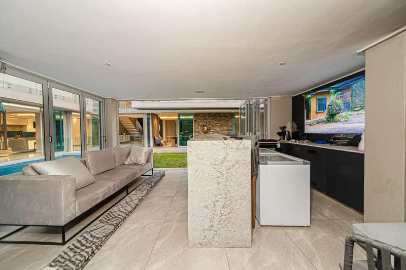 The heart of this home is its exquisite outdoor space, featuring a shimmering pool and meticulously manicured garden. The bar and braai area provide the perfect vantage point to appreciate the entire estate, enhancing the alfresco dining experience. The gourmet kitchen, equipped with a premium gas stove, is a culinary enthusiast?ÇÖs dream, designed for both everyday meals and grand feasts. Adjacent to it, the dining area and outdoor patio blend to create an effortless indoor-outdoor living experience.