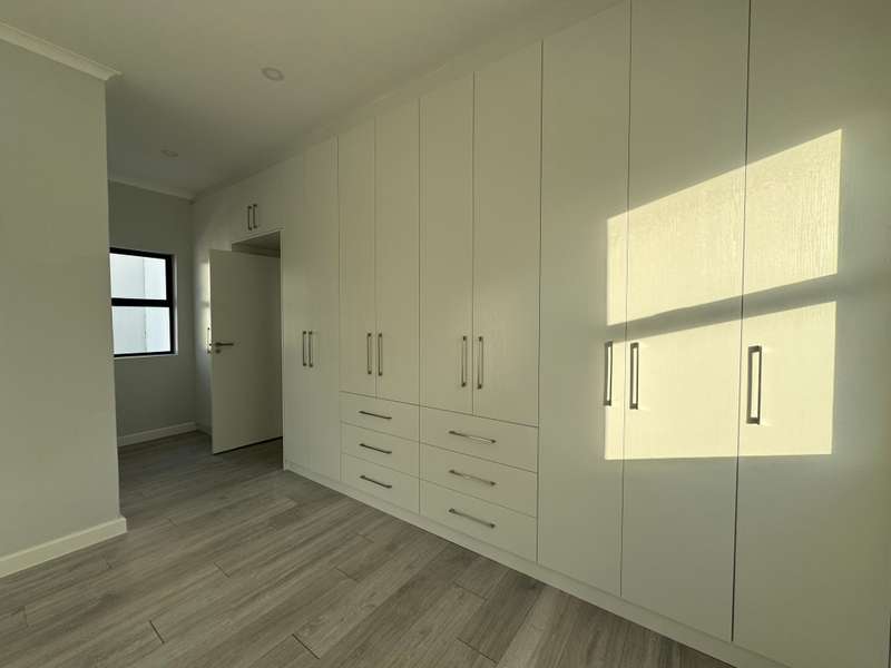 Discover modern luxury and convenience in this brand new 4-bedroom house, meticulously designed for contemporary living. With no transfer duty, this exceptional property offers unparalleled value and a host of premium features. Ground Floor: Open-Plan Kitchen, Living, Dining, and Entertainment Area: A seamless integration of these essential spaces, perfect for family gatherings and entertaining. The modern kitchen is equipped with high-end finishes and an island for casual dining. Scullery: Efficiently plumbed for three appliances, providing extra storage and keeping the main kitchen area tidy. Guest Bedroom: A comfortable and private space for visitors or extended family. Guest Bathroom: Conveniently located and equipped with a shower, featuring modern fixtures and stylish finishes. Upstairs: Pyjama Lounge: A cozy and versatile space for relaxation, perfect for family movie nights or a quiet reading nook. Two Well-Appointed Bedrooms: Both bedrooms share a full bathroom, designed with contemporary fixtures and ample space. Main Bedroom Suite: A luxurious retreat featuring an ensuite bathroom and ample cupboard space, ensuring comfort and convenience. Additional Features: Modern and Elegant Design: High-quality materials and finishes throughout the home, creating a sophisticated and stylish aesthetic. Bright and Airy Atmosphere: Large windows and an open-plan layout allow for abundant natural light, creating a warm and welcoming environment. Ample Storage: Thoughtfully designed storage solutions throughout the home, ensuring a clutter-free living space. No Transfer Duty: Offering significant savings and exceptional value. This beautiful property is the perfect blend of luxury, style, and functionality. Don’t miss the opportunity to make this stunning house your new home. Contact us today to schedule a viewing and experience the elegance and comfort of this brand new residence!