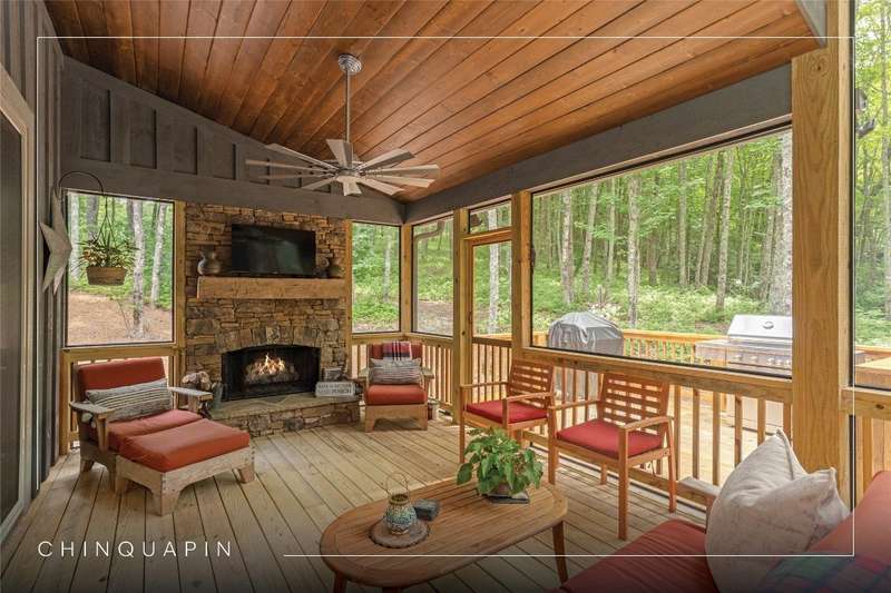 Experience the perfect harmony of easy outdoor living and tranquility at 1582 New Settler's Way, a mountain retreat crafted by Fern Creek Builders. Located in the desirable Chinquapin community, this three-bedroom, three-and-a-half-bathroom home offers a rare opportunity to own a piece of paradise, where classic mountain finishes blend seamlessly with serene natural surroundings. Inside, a thoughtfully designed floor plan features a welcoming rocking-chair front porch, two cozy fireplaces, abundant natural light, and low-maintenance finishes throughout. The spacious gourmet kitchen connects to a warm living area, perfect for entertaining or relaxing. An indoor-outdoor lifestyle is highlighted by a screened-in porch, a grill deck, and a stone firepit - ideal for enjoying starry mountain nights. The property borders a winding creek and is complemented by the gentle sounds of a nearby waterfall, making it an ideal retreat to spend time in nature. Whether enjoying a morning coffee on the porch or relaxing by the fire, the setting offers quiet serenity. Additional features include an attached two-car garage, ample storage, spacious ensuite guest bedrooms, and access to community outdoor amenities within the gated Chinquapin community. Chinquapin spans an impressive 2,000 acres with more than 700 acres dedicated to permanent conservation. This community offers park-like living with a host of unparalleled amenities. Scenic trails for hiking, biking, and utility terrain vehicles provide for an outdoor lifestyle, while fishing opportunities are available in the community's lakes and streams. Pickleball courts, a disc golf course, and a driving range are also available just moments away. The Outpost Clubhouse provides a fitness facility, cozy gathering spaces, and seasonal live music during the vibrant Summer Concert Series. Whether relaxing by the firepit, canoeing along tranquil waters, or exploring the unspoiled natural surroundings, Chinquapin presents countless ways to connect with nature and neighbors alike. Offering unmatched ease of access compared with other available lots, this move-in-ready property at 1582 New Settler's Way promises exceptional peace, privacy, and refined mountain living, whether as a full-time residence or a mountain retreat.