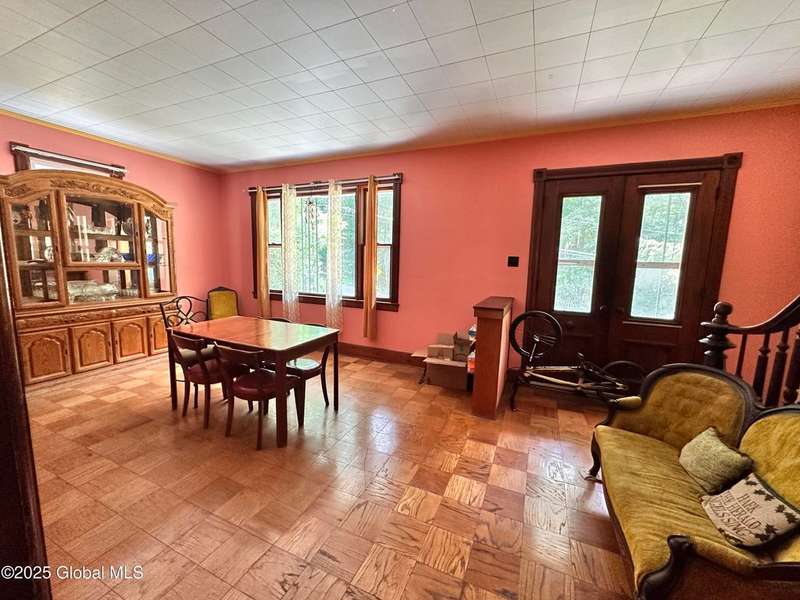 Charming 6 bedrooms, 3 full bathroom home on over 3/4 of an acre, just a short walk to downtown shops and eateries. Features beautiful original woodwork, hardwood floors, and newer windows. Two convenient first floor bedrooms, open living room, formal dining room and kitchen great for entertaining. Custom built-ins for additional storage. Recent updates include new electrical wiring (outside walls & stairway), insulation in attic and walls, new oil tank, and new garage roof. Detached 2-car garage offers extra space and convenience. Home can be easily converted into a two family. Huge 1st floor primary suite with separate entrance & handicap accessible doorways/bath. A perfect blend of character, space, and modern updates in a peaceful yet central location!