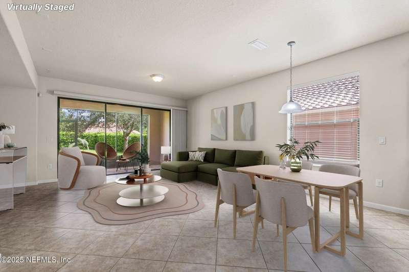 Small but mighty, this Willow plan in Del Webb Ponte Vedra is filled with charm and light. With 2 bedrooms, 2 baths, a versatile den, and 2-car garage, it's all the home you need - and nothing you don't. Fresh carpet, granite countertops, and new bath fixtures make it move-in ready, while the spacious owner's suite offers a walk-in shower, dual sinks, and large walk-in closet.One of the most unique features you'll find anywhere: a hurricane safe room right in the garage, plus metal shutters & solid concrete block construction for extra peace of mind. It has a Spanish tile roof that is known to last 50 years & also comes with a agent provided home warranty, transferable to the buyer at closing.Outside, the covered, screened, and paved patio opens to a private backyard - perfect for morning coffee, quiet evenings, or gathering with friends. Offering exceptional value in this neighborhood, this home is a sweet spot where comfort, convenience, and community come together. Del Webb Ponte Vedra is an age-restricted community designed for active adults, offering a resort-style lifestyle. The private Anastasia Club features indoor and outdoor pools, a state-of-the-art fitness center, pickleball and tennis courts, and an active calendar of clubs, classes, and social events. Whether you prefer yoga at sunrise, a round of pickleball with friends, or an evening gathering by the pool, there's always something to enjoy.As a resident of Nocatee, you'll also enjoy award-winning amenities outside Del Webb including water parks, trails, neighborhood parks, and community events. It's the perfect combination: a vibrant lifestyle within Del Webb and the larger Nocatee experience as a bonus.