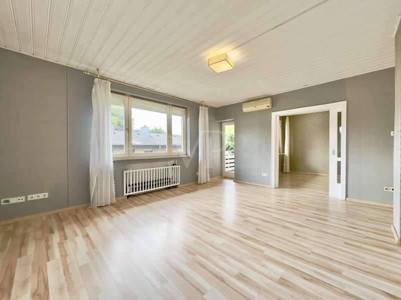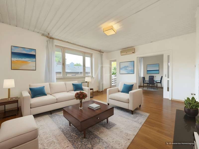 **Attractive 4-room apartment in the heart of the city - ideal options for individual design for owner-occupiers or investors** With a living space of approx. 89 m², this spacious apartment offers ideal conditions for realizing your living ideas. The property is located on the 2nd floor of an apartment building built in 1956 and is characterized in particular by its excellent inner-city location in a quiet cul-de-sac - urban living paired with pleasant seclusion. The apartment offers you the opportunity to design your new home according to your personal ideas. Energy optimization measures have already been tackled: The roof was retrofitted with insulation in 2023 and the façade in 2025, which will have a positive impact on the property's energy balance and is not yet included in the current energy performance certificate. The apartment boasts a clearly structured floor plan, spread over a total of four rooms, including two bedrooms, a bright living room and a dining room. The spacious living and dining area offers plenty of room to spend time together and is pleasantly tempered even on hot days thanks to the integrated air conditioning. A special added value is the adjoining balcony facing south-west, which creates a relaxing retreat in the fresh air. The kitchen is equipped with a practical fitted kitchen and offers plenty of space for amateur chefs and families. The daylight bathroom is equipped with a shower and a bathtub and ensures a pleasant feel-good atmosphere. Sufficient daylight and friendly ventilation are provided. Electric blinds, which are installed in parts of the apartment, offer additional comfort and can be conveniently controlled. A special bonus is the associated private parking space, which guarantees convenient parking directly at the property. The location at the end of a cul-de-sac guarantees low-traffic living, while you can quickly reach the many amenities of the nearby city center on foot - be it shopping facilities, doctors, cafés or cultural institutions. The apartment is heated by its own gas condensing boiler, which ensures an efficient and reliable heat supply. The inner-city location allows you short distances to all facilities for daily needs, cultural offerings and public transportation. All essential infrastructure such as shopping facilities, doctors, schools and daycare centers are just a few minutes' walk away. We will be happy to provide you with further information or arrange a viewing. We look forward to hearing from you and providing you with comprehensive advice on this interesting real estate offer.