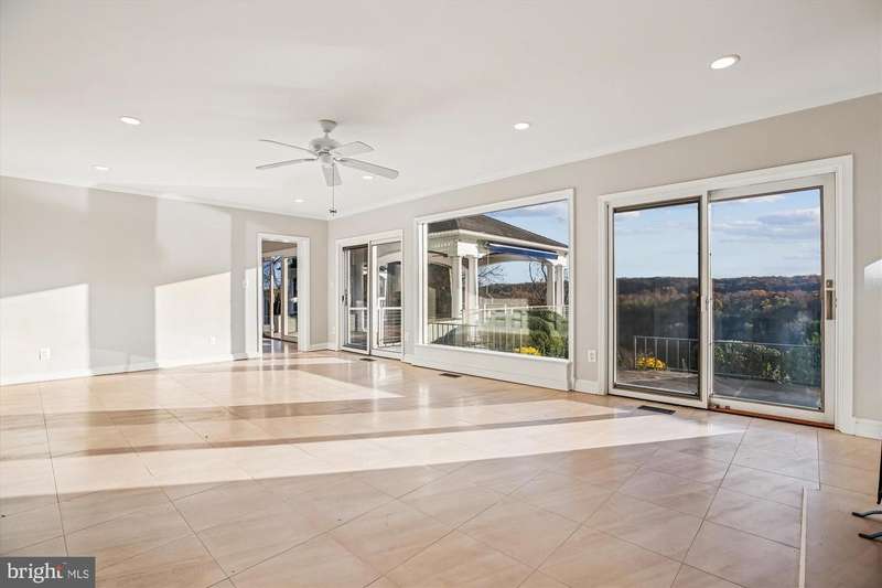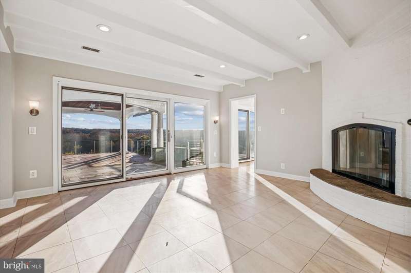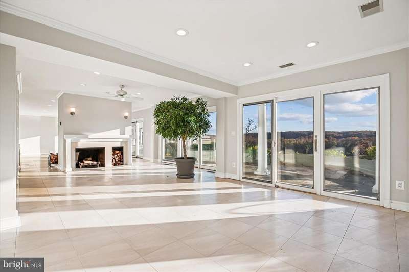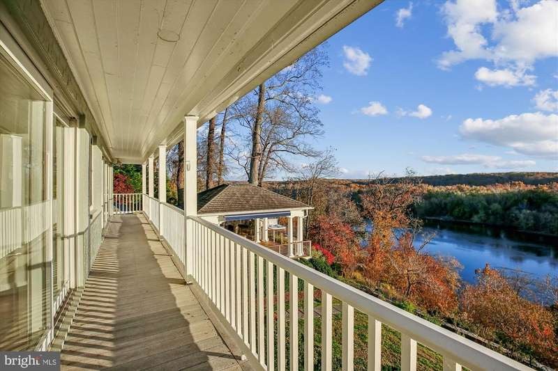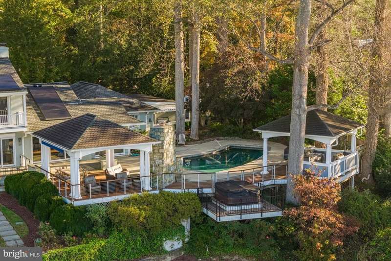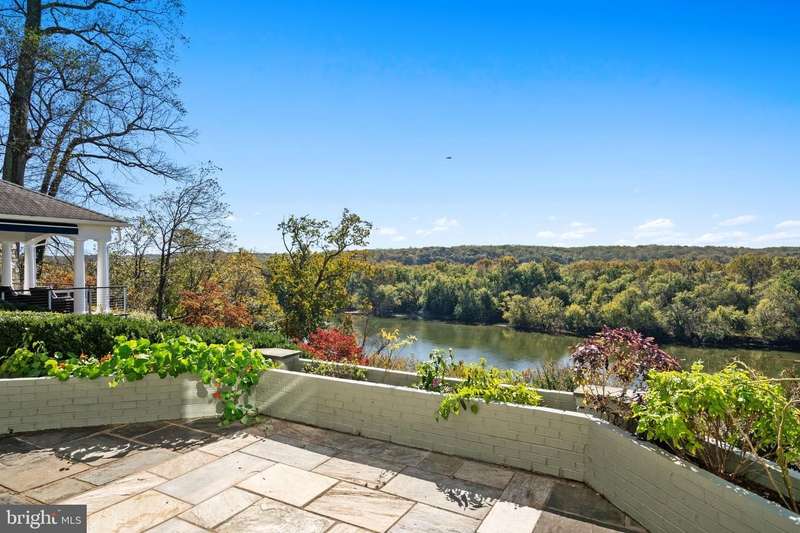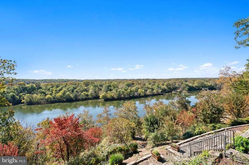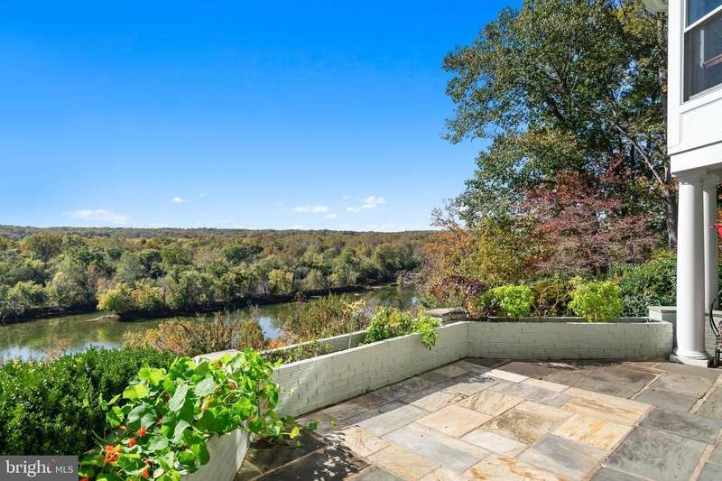 Welcome To 11510 Springridge Road, an extraordinary property offering unobstructed, year-round views of the Potomac River-an exceptional find in the Washington, DC area. This nature lover's paradise is set on over three acres, adjacent on two sides to the bucolic C&O Canal National Historic Park, with 270-degree river frontage and creek access from which you can float your kayak under the canal and out to the Potomac. This remarkable setting provides a rare opportunity for breathtaking panoramas and a natural sanctuary complete with nesting bald eagles and blue herons for neighbors. The four-bedroom residence is gracefully perched atop a gentle knoll, where a circular drive with a water feature inspired by the river frames a broad lawn accented by stonework and mature plantings. From the front entry, the eye is immediately drawn to uninterrupted views of the river. Designed to capture its setting, all principal rooms face the Potomac through expansive floor to ceiling windows. The main level showcases a gourmet kitchen adjoining a gathering room featuring a fireplace and that opens to an extensive outdoor living area including an expansive patio featuring an inground pool and two pergolas. A spacious dining room with built-in glass-front cabinetry and a dual-sided fireplace connects seamlessly to the formal living room, where walls of glass share the warmth of the same hearth. The chef's kitchen is equipped with double wall ovens, two dishwashers, a Sub-Zero refrigerator and freezer, a Gaggenau cooktop with built-in grill, two skylights, extensive cabinets and multiple pantries, and granite counters. This level also offers an en-suite bedroom, a handicap-accessible full bath, an additional bedroom with hall bath, and a mudroom/laundry with exterior entry and garage access. The upper level hosts two en-suite bedrooms, including the palatial primary suite. This remarkable retreat features a sitting room, a fireplace framed by custom built-ins, and an octagonal turret. It also offers two voluminous walk-in closets, an additional deep closet, recessed lighting, and both front and rear balconies. The spa-like primary bath includes a glass-enclosed shower, soaking tub, oversized vanity, and skylight, with a convenient storage room just beyond. Both bedrooms enjoy the rare luxury of waking up each morning to glorious water views, often accompanied by majestic eagle sightings. The outdoor spaces are equally impressive, with sweeping terraces and patios extending across the home-each capturing captivating views. The pool area is complemented by a completely outfitted outdoor kitchen with Viking appliances, a stone fireplace, and two covered pergolas. A hot tub is perfectly perched at the edge of the hill, offering incredible vistas and star gazing galore. Meandering footpaths weave through the lush grounds, leading to secluded perches alive with flowers, birds, and butterflies. Practical features include a new roof, two propane systems, owner-owned solar panels, a new shed, a potting area, a comprehensive irrigation system, a garage, and a carport. Whether enjoying the views from inside or out, let nature nourish your soul while still being less than ten minutes from Potomac Village's shops and restaurants, with direct access to River Road and easy reach of Washington, DC's vibrancy. Just steps from the Potomac River and near Blockhouse Point Conservation Park and trails, this property blends rare natural beauty with unmatched convenience.