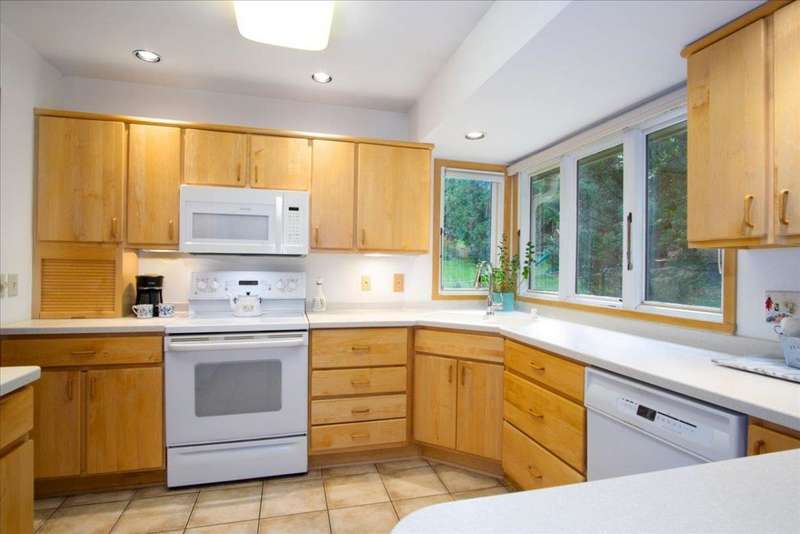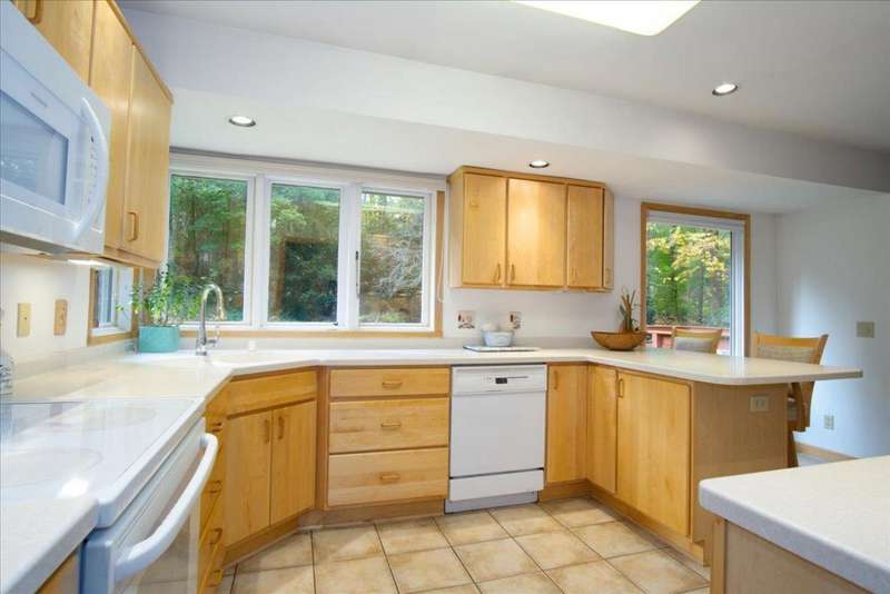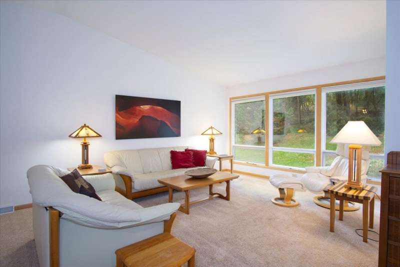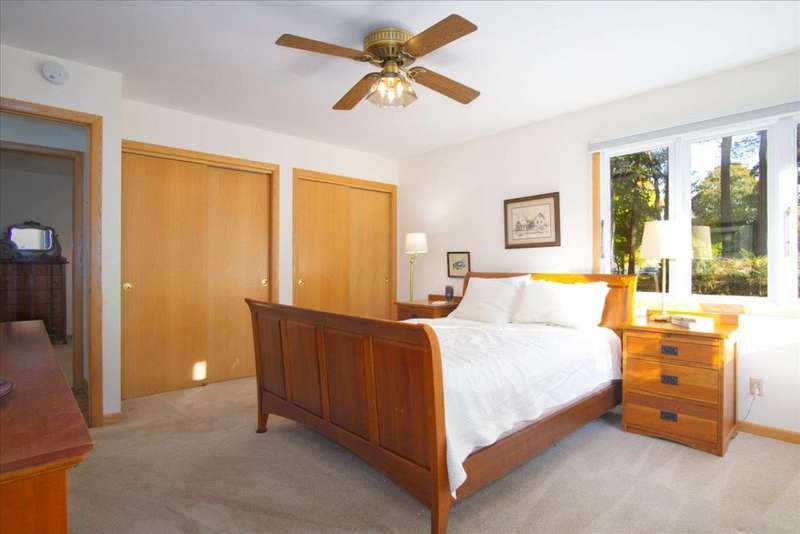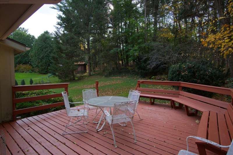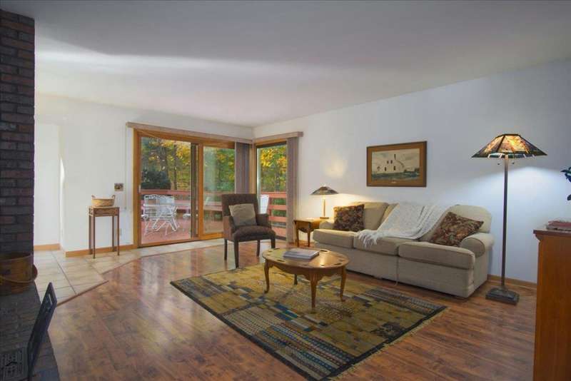 Private setting in nature's paradise! Over 1/3 acre lot set among established trees, this ranch home offers room to spread out inside. Entry and living space invite you in to enjoy the lush fenced-in backyard. Adjacent dining space is set against the exposed brick of the chimney. Eat-in kitchen offers ample storage and counter-space for baking and cooking enthusiasts. Cozy family room w/fireplace and sliding door leads to the large deck, which will become another cherished room of the house come spring! Three generous bedrooms, including ensuite primary round out the main level. Laundry on both levels provides convenience & flexibility. HUGE unfinished basement for your future plans. Priced to allow for your personalization and investment for the next 20+ years!