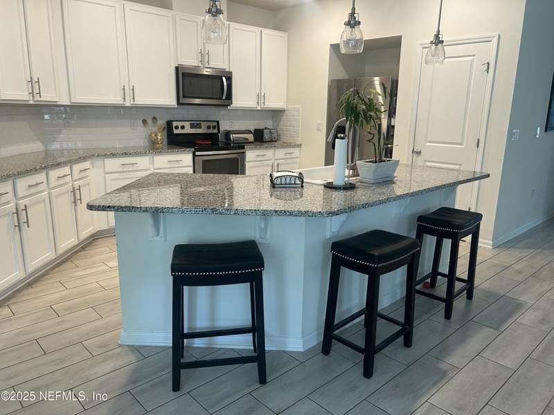 Welcome to this beautifully maintained 4 bedroom 2 bath home offering comfort, style and energy efficiency. Step inside to soaring 9 foot ceilings and bright open layout perfect for modern living. The kitchen boast 40'' white cabinets, providing ample storage and a clean, timeless look. French doors open from the main living area to a spacious extended patio ideal for entertaining or relaxing while enjoying your private, fenced backyard that backs up to a peaceful nature preserve. This home also features a solar water softener for eco-friendly savings, an indoor laundry room for added convenience, and thoughtful design touches throughout. Located in a vibrant community, residents also enjoy access to a sparkling community pool, a fun splash pool for the kids and a playground perfect for families and outdoor enjoyment. Don't miss this rare opportunity to own a serene retreat with all the benefits of a smart, stylish home!