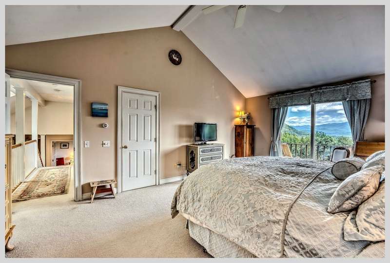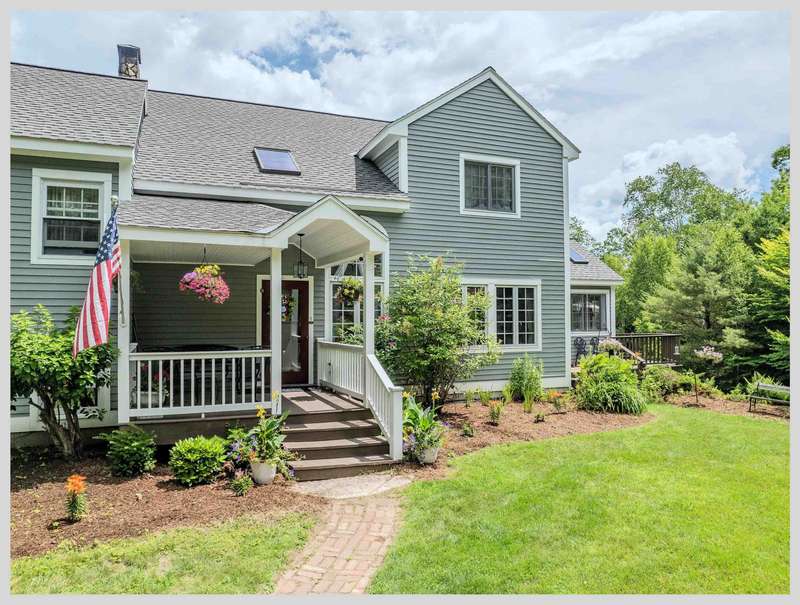 STUNNING, EXPANSIVE MOUNTAIN VIEWS — Elegance, quality, and refinement define this exceptional home. A long, private driveway winds through beautifully maintained grounds and gardens to a welcoming entrance, with glimpses of the breathtaking mountain views beyond. Nestled on just over 2 acres at the southern foot of the White Mountains, this private retreat is minutes from four major ski resorts, hiking, golf, and boating—and just 3½ miles to I-93 and under two hours to Boston. Every detail reflects superior craftsmanship and thoughtful design, creating a refined sanctuary surrounded by nature. The main living room features a striking fieldstone hearth with a Jotul woodstove and oversized windows framing sweeping vistas from Franconia Notch to Sandwich Dome. Vaulted ceilings, skylights, and expansive windows fill the home with light, while the vaulted primary suite includes a jetted tub and private balcony. The chef’s kitchen, complete with granite island, Thermador cooktop, Bosch and JennAir appliances, opens to a sunroom and wraparound deck. Additional highlights include a full guest apartment, automatic generator, security system, high-speed internet, new heating system, two-car garage, and covered porches—all combining comfort, privacy, and panoramic mountain beauty in one stunning property.