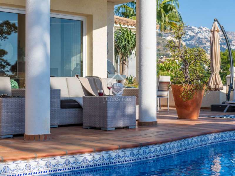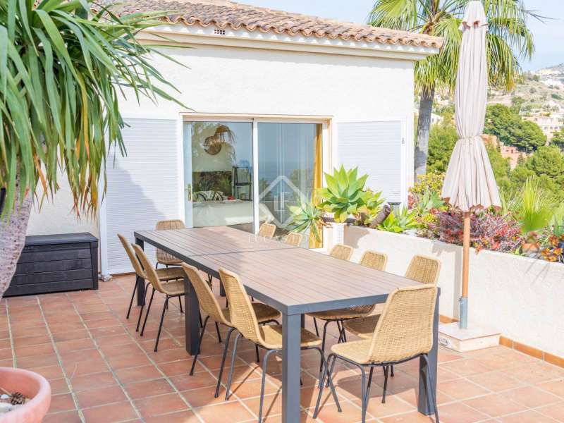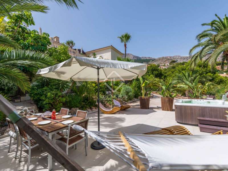 Nestled within the highly coveted and sought-after residential area of Galera de la Palmeras in Altea Costa Blanca, this luxury villa epitomizes exquisite living. Situated close to the sparkling sea, Greenwich Marina, the beaches and the charming downtown area of Altea, this property offers the perfect blend of tranquility and convenience. Boasting traditional Spanish architecture, this individually designed villa built on two floors spans an impressive 244 square meters with 7 bedrooms and 5 bathrooms. It has been meticulously renovated with impeccable taste in a modern Ibizenco style. The careful selection of materials enhances the property's warm and inviting ambiance, ensuring a relaxing retreat for your family and friends. Bathed in natural sunlight, the villa enjoys stunning sea views and mountain views either. The main floor welcomes you with an entrance hall that leads to the comfortable living space and dining room, complete with a cosy fireplace. The spacious open-plan kitchen is equipped with top-of-the-line appliances, perfect for preparing meals to be shared with family and friends. You have direct access to the main terrace and will immediately be charmed by the 9x4 pool. Enjoy the privileged climate of the Costa Blanca on the spacious terrace and Relax and soak up the sun. You will enjoy family meals on this spacious terrace where you have beautiful views over the Mediterranean Sea and Altea. The sleeping quarters are spread across the two floors, providing optimal accommodation for your guests. Children can enjoy their own spaces, while adults can bask in the serenity of the villa. Additionally, there is a (guest) studio with its own kitchen, two bedrooms, and two bathrooms. The studio has a separate entrance. Surrounded by lush gardens spanning 1344 square meters completely fenced, the property is adorned with fruit trees such as lemon, mandarin and orange trees, as well as Mediterranean plants, palm trees creating a serene and picturesque setting. There are plenty of lovely shady corners to enjoy a nice book or for day dreaming and completely relax. There are sun terraces at your private six-person jacuzzi . A barbecue area and a space to maintain your fitness enhance this magnificent garden. The spacious carport provides covered parking for two cars. And on the below parking area there is room for at least two more.It adds to the convenience of this welcoming and family-friendly estate. In conclusion, this fabulous villa in Altea offers a perfect blend of traditional charm, modern comforts, and breathtaking surroundings. Whether seeking a permanent residence or a holiday retreat, this property provides an idyllic sanctuary for discerning homeowners to enjoy the epitome of luxury living on the stunning Costa Blanca.