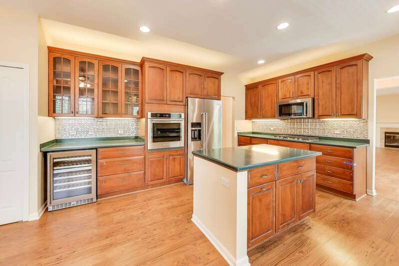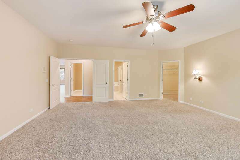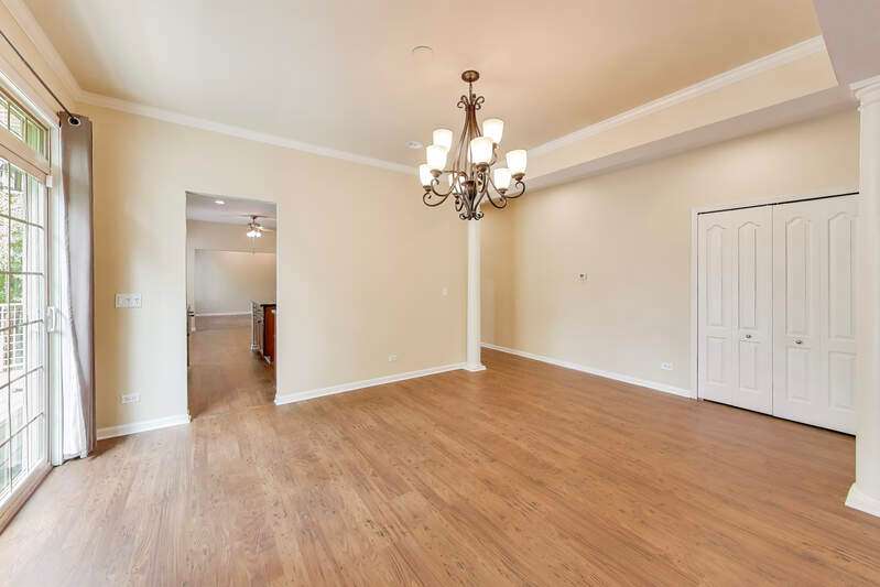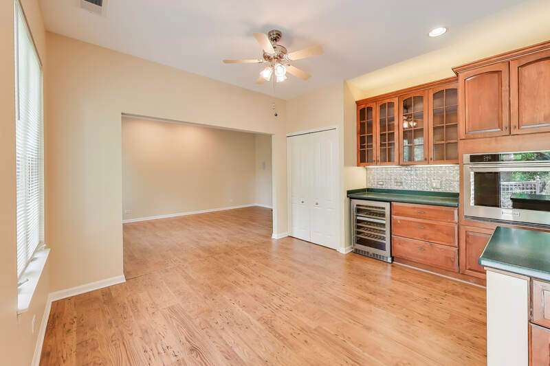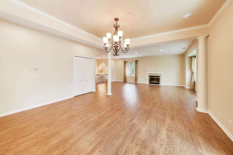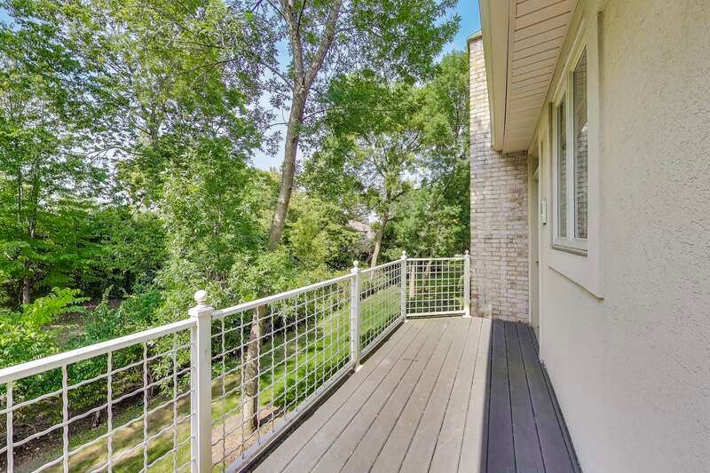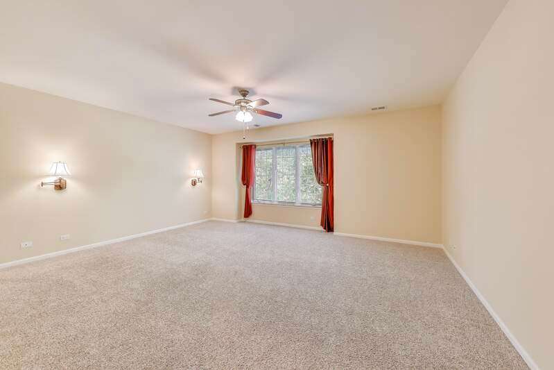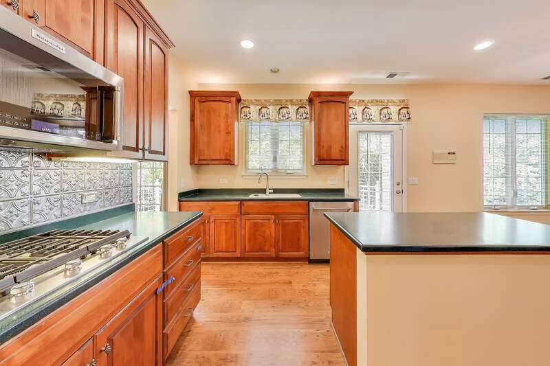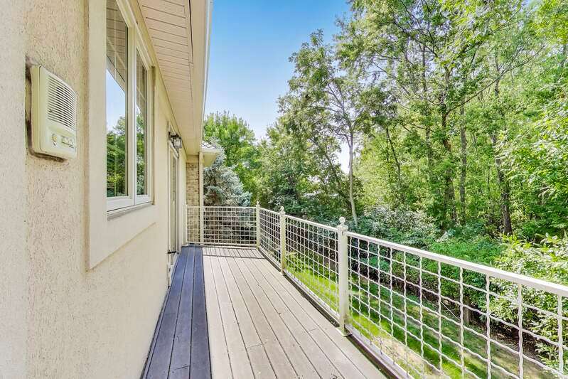 Located in a quiet cul-de-sac backing into peaceful woods, this lovely townhouse offers 2846 sf in the popular Beaconsfield community. Solid brick with an open floor plan, it presents three bedrooms and 2.5 baths. Bright with walls of windows, the combined living and dining rooms are graced with a fireplace sporting a marble surround with custom mantle. A large balcony accessed from the dining room and kitchen offers calming views of the woods beyond. The kitchen boasts a large island and 42" cabinets, new stainless steel appliances including a built-in oven with gas cook top, built-in microwave, dishwasher and wine/beverage cooler. A welcome pantry closet offers storage. A family room opens off of the kitchen. The master suite presents an ample master bath with tub and separate shower, dual sinks and a large vanity counter, as well as an extra-large closet. The second bedroom offers a walk-in closet with custom built-in organizers. The third bedroom works perfectly as a study. The second full bath and guest half-bath offer more convenience. In the finished basement, the huge rec room offers a playroom area with a fully functioning workshop to the side. Newer LG front load washer & Maytag Valet dryer add convenience, as does the new furnace, air conditioner and water heater. A new roof, gutters, fascia, soffit and newly paved driveway enhance the townhouse. The large, attached garage comfortably fits 2 cars plus. Including the basement, the house boasts 3850 sf of living space. Close to transportation, shopping and library. In award-winning Stevenson High School district 125. Lincolnshire elementary school district 103. Perfect!