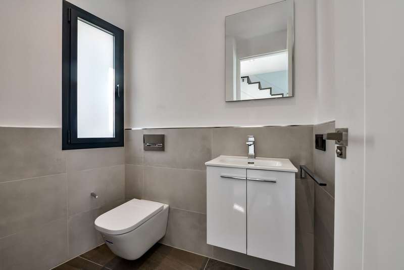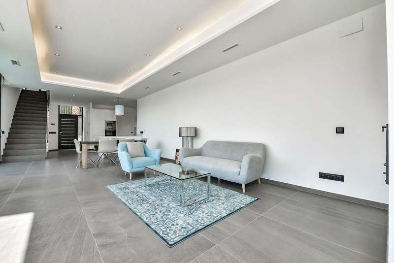 Brand-new modern style villa with an innovative design with straight lines, located in the residential area of Cansalades-Tosalet, with views of the sea and valley in the city of Jávea, Alicante. The villa is spread over two floors with an area of 372.33 m2. The main floor is made up of a living-dining room with access to the terrace, a kitchen equipped with electrical appliances, a washing zone and a toilet. The first floor is used as a rest area, where you can find the main bedroom with a dressing room and an en suite bathroom, two double bedrooms with built-in wardrobes and a complete bathroom. Next to the covered terrace there is a barbecue and infinity pool from where you can enjoy views of the sea and stunning open views of the valley. The 1000 m2 plot is completely fenced with a garden and with an electric entrance gate. Furthermore, it has underfloor heating and air conditioning with a heating pump. The residential area is found near to services and just 3 km from the El Arenal beach in Jávea.