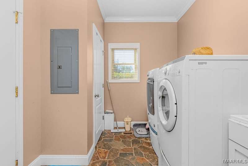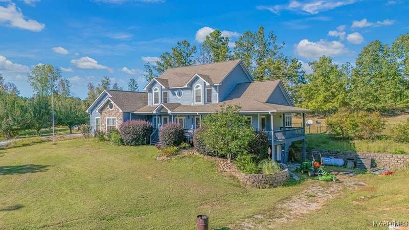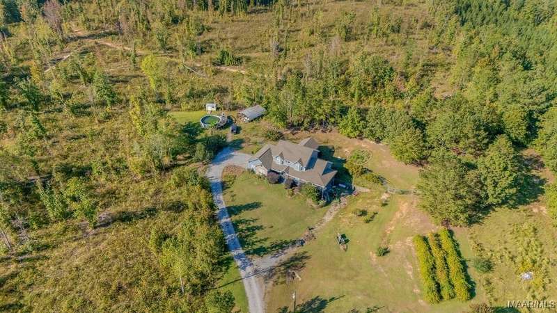 THIS HOME CHECKS ALL THE BOXES! Sits on 31 ac very private and serene. Beautiful 5 Bedroom 3 1/2 Bath home. As you enter through the iron gate on the wrap around porch you will know you are home. Lots of space inside and out for family gatherings. The main level master suite is large and roomy with a fireplace. The bath has double vanities. The kitchen has beautiful wood cabinets with a large pantry and a breakfast room. The flooring is beautiful slate tile. There is also a formal dining room. The den has a fireplace, wet bar and french doors leading out onto the deck where you can enjoy your morning coffee. The upstairs has 4 bedroom and a sitting area. There is a 2 car main level garage and 1 car garage in basement. The basement has poured walls, workshop and lots of storage. The basement offers space for future expansion. There is a pool, pole barn, shed, chicken coop. Grape Arbors and ATV trails throughout the property. Bring your horse there is a barn and pasture ready. The location is great for easy access to I 65.