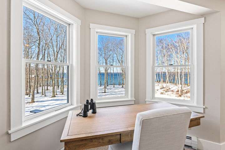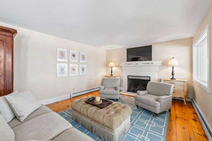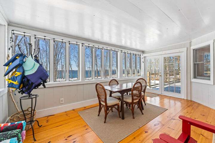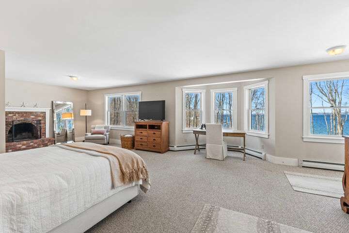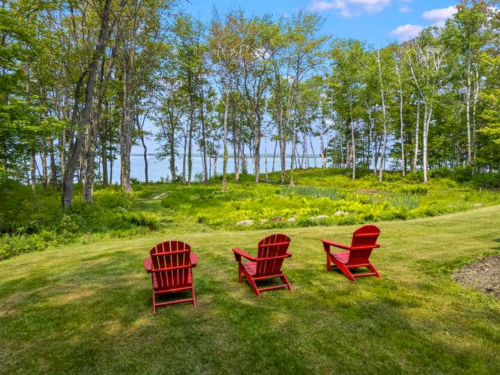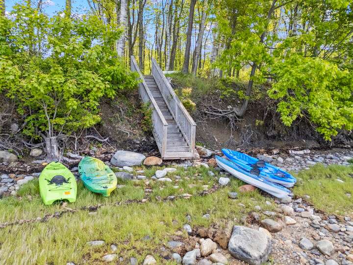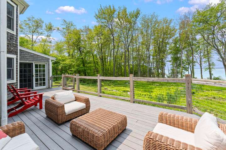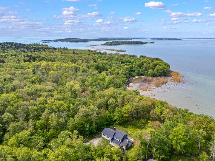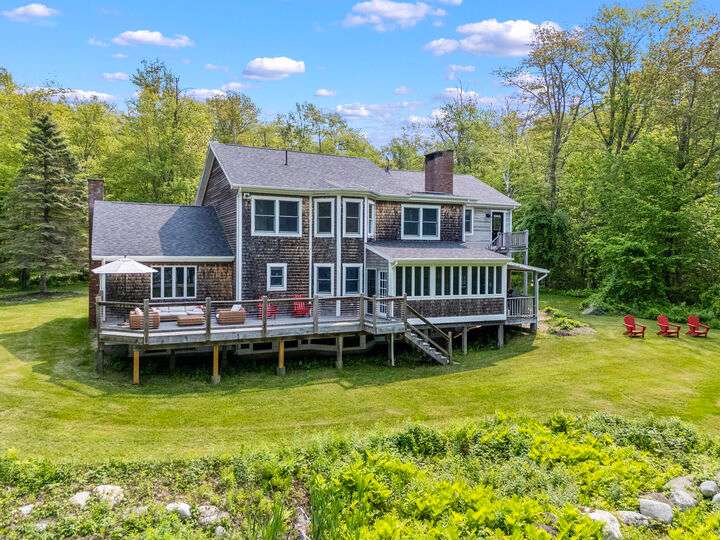 Waterfront Retreat located on picturesque Chebeague Island. This spacious four-bedroom, two-and-a-half-bath home embodies classic island living, offering stunning, panoramic views of Casco Bay. The interior is filled with natural light, featuring gleaming hardwood floors and three cozy wood-burning fireplaces. The property sits on three acres and includes 150 feet of exclusive waterfront, providing direct access for boating, swimming, kayaking, and fishing. The main level offers an open-concept kitchen, an inviting den with a wood-burning fireplace, and direct access to a back porch and expansive deck—perfect for enjoying breathtaking sunsets. The living and dining area features coastal shiplap, a vaulted ceiling, and a wood-burning fireplace. The lower level includes a large, dry daylight basement offering expansive and versatile storage options, and the exterior features an oversized two-car attached garage. This classic coastal hideaway is situated directly on Casco Bay, offering a private setting where you are completely surrounded by nature. The location is exceptionally convenient, situated only seven minutes from the ferry and market, and a two-minute walk or bike ride to the Community Recreation Center. The property is also close to various island amenities, including golf, tennis, sailing, scenic trails, the library, a full-service boatyard, and beautiful beaches. This property is a truly versatile option, whether you are seeking a great investment, a year-round residence, or a summer retreat.