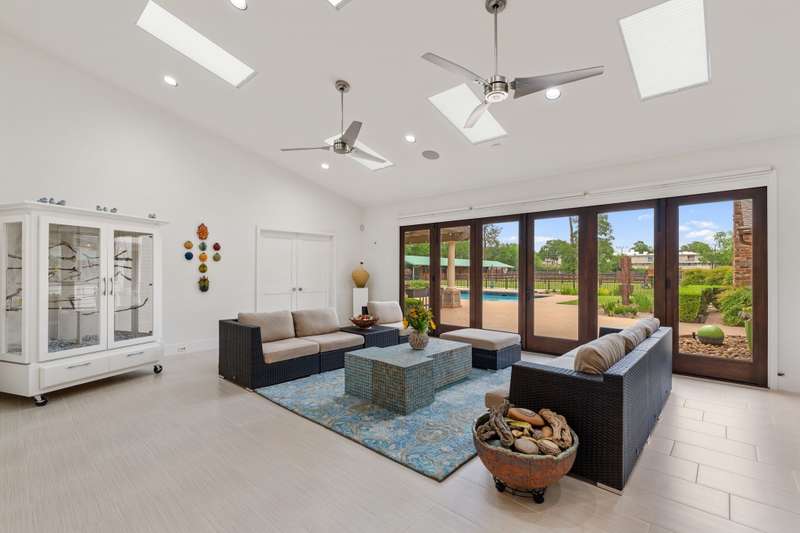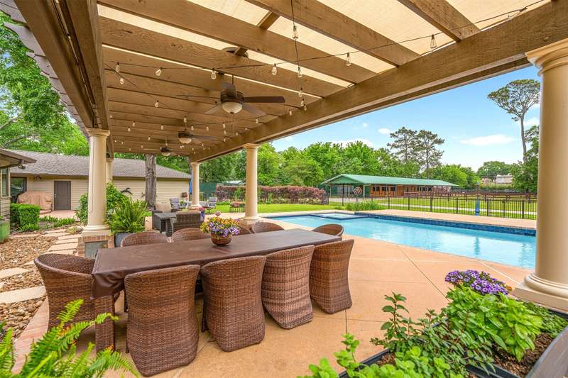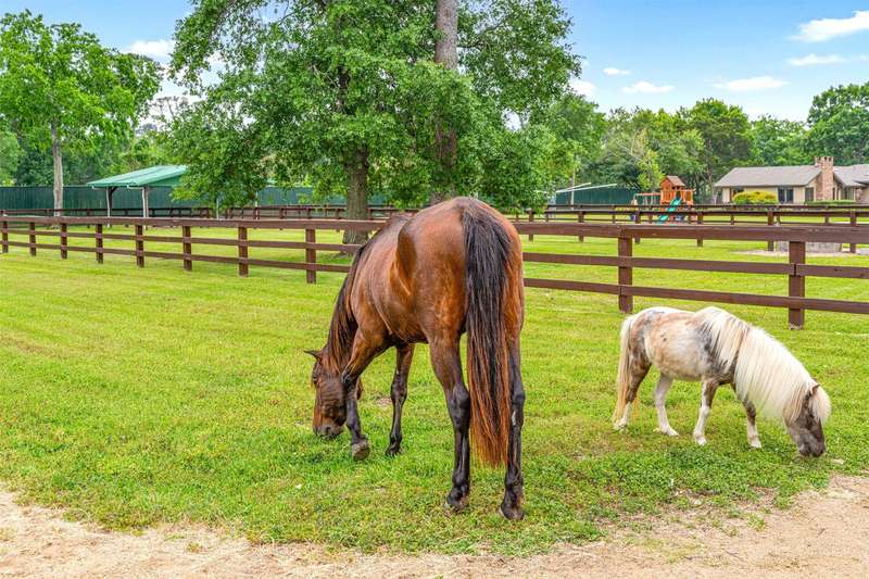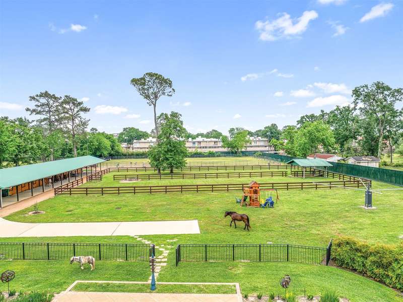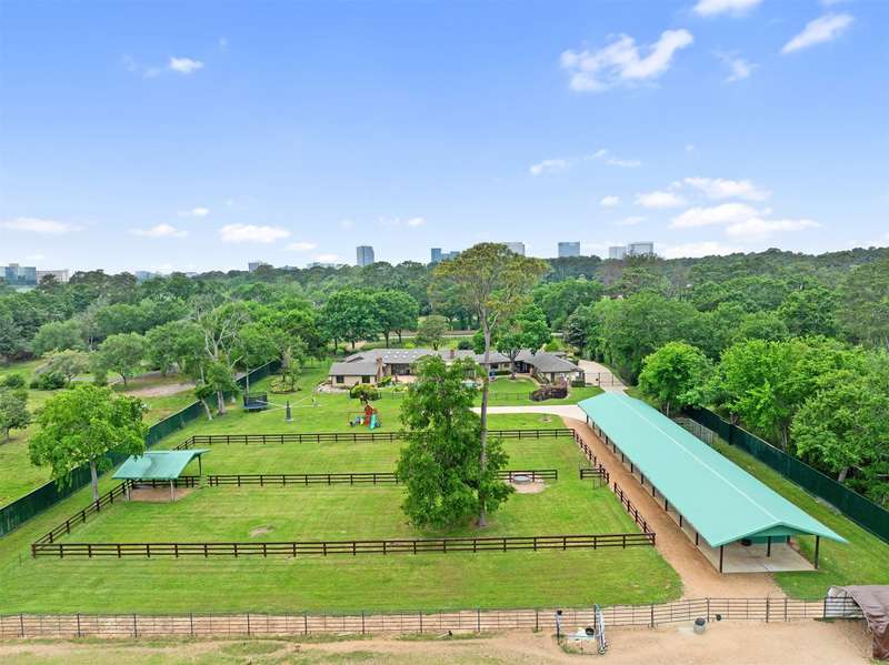 Rare equestrian estate inside Beltway 8—offering nearly 4 acres of luxury living and fully equipped horse facilities just minutes from the city. This 4-bed, 4.5-bath contemporary ranch (plus guest house & 3-car garage) was fully renovated in 2014 with recent upgrades including a new roof, HVAC, Control4 smart home system, and full indoor/outdoor sound. A long private drive leads to open-concept interiors with vaulted ceilings and sunlit living spaces. Outdoors, enjoy a sparkling pool,concept interiors with vaulted ceilings and sunlit living spaces. Outdoors, enjoy a sparkling pool,alfresco dining, and curated gardens. For equestrians: a 6-stall professional barn, tack & feedrooms, fenced pastures, and a private riding arena. A rare blend of land, luxury, and horse-ready amenities in a prime urban location. All info per seller