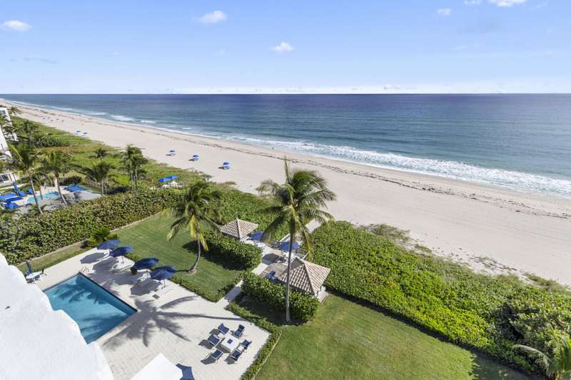 2026/2027 seasonal rental.Direct oceanfront fifth floor condo in boutique building comprised of 19 units. Desirable updated end unit. Three bedrooms, two full baths, spectacular ocean view. Large wrap terrace to enjoy sun and moon rise. Impact glass doors and windows. Two assigned parking spaces. Amenities include entertainment room with kitchen, heated pool, tiki hut and outdoor grill. A sought-after location in the charming town of Gulf Stream.2026-2027 seasonal rental, 6 month min, pets allowed, available Oct 2026 until May 31, 2027 $15,000/mo. Yearly rental also available at annual rates from May 1, 2026, through April 2027 please inquire for annual rate