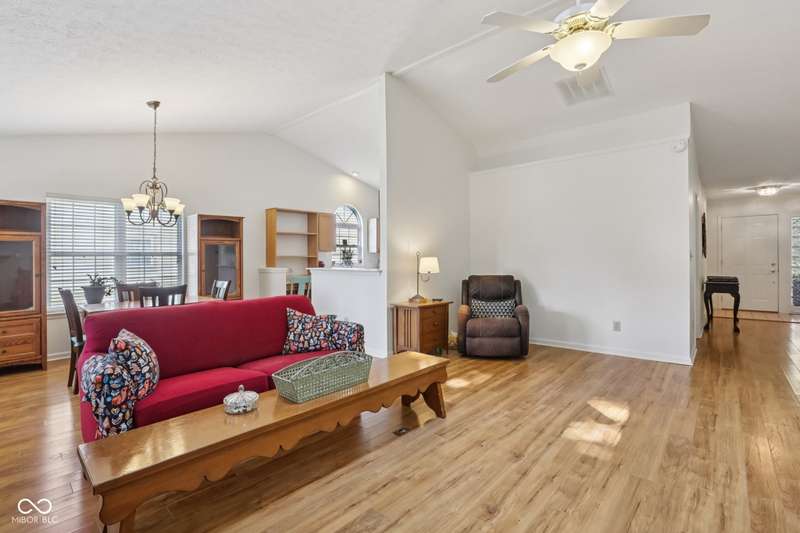 Prettier than ever, brightened up fixtures and freshly painted interior beckon the buyer looking for a lovingly maintained move-in ready 3 bedroom 2 bath ranch. Located in a quiet cul-de-sac neighborhood, this home features Pergo flooring in the great room and hallway, vaulted ceilings, and a beautiful gas log fireplace. A hard to find huge kitchen with an abundance of cabinets is a stand-out feature. The conveniently placed laundry room makes life easy, while a serene screened-in porch offers the perfect place to unwind. All on one level, quality home. A beautifully landscaped yard add to the curb appeal. Major updates include: *Furnace (2017) *Roof (2021) *A/C (2022) *Vinyl-wrapped windows (2023)* New vinyl soffits (2023).