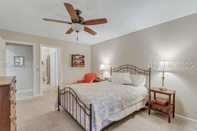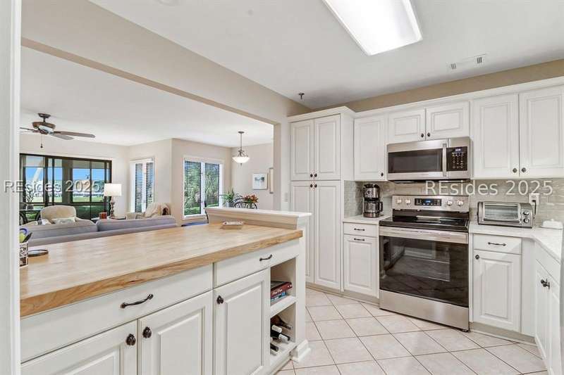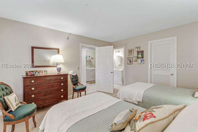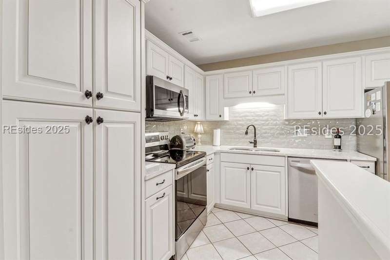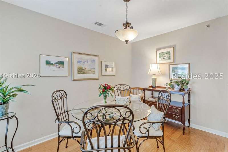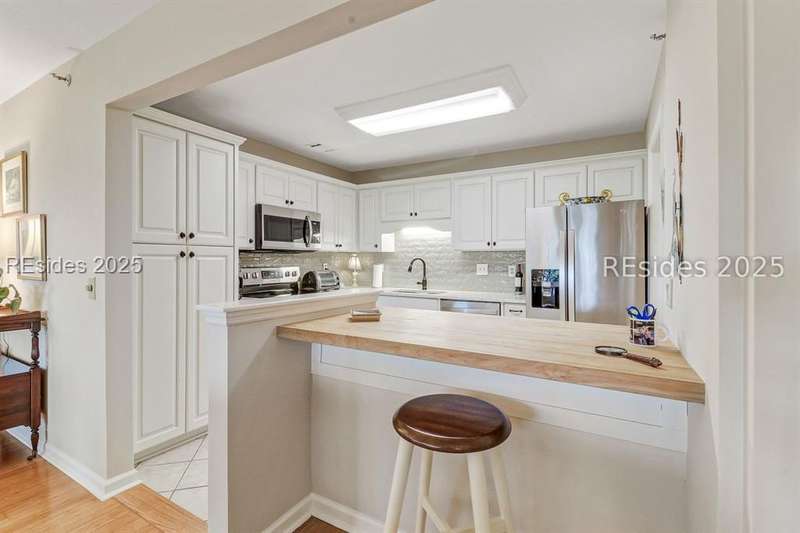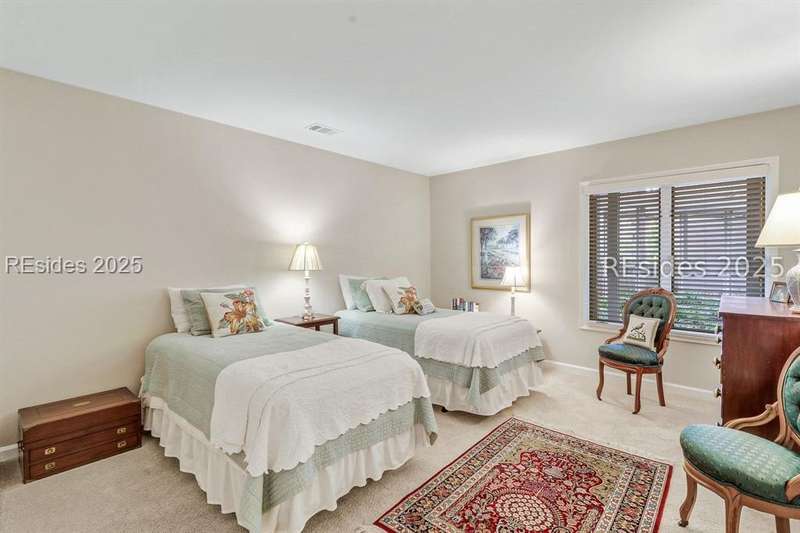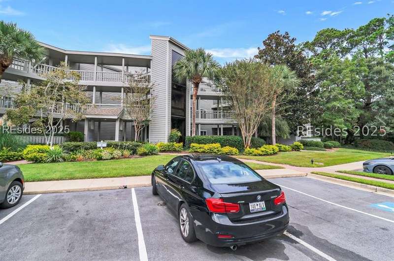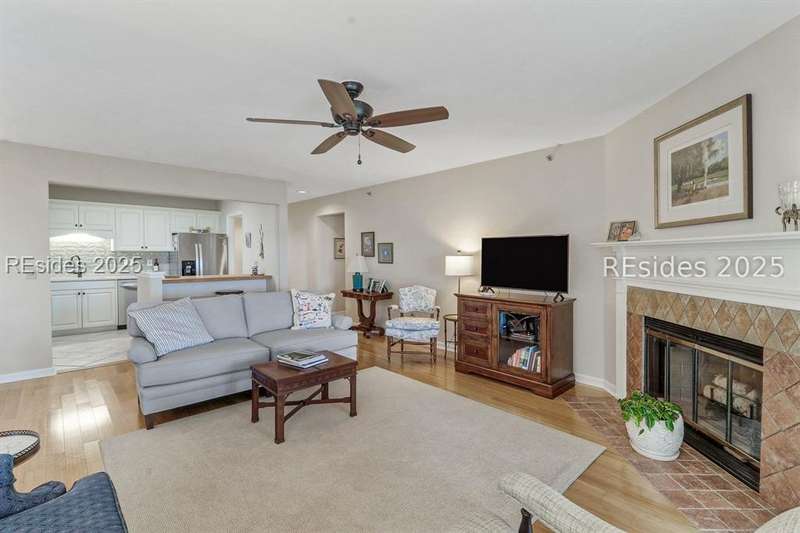Experience panoramic ICW/Skull Creek & Marina views from this charming, updated, value priced, 2BR/2BA, 1600 SQ FT villa with convenient, much desired first floor locale in popular HHP. Features include smooth ceilings, walls of windows to view, quartz/granite counters, subway tile backsplash, attractive re-faced kitchen cabinetry, wood/tile/carpet flooring, custom window treatments, designer fixtures/hardware/lighting, ceiling fans, wood burning fireplace & impressive storage/closet space. Very livable floor plan offers updated kitchen w/island (butcher block top & breakfast bar) & stainless steel appliance package open to dining & expansive great rm, Carolina rm with shiplap walls & glass door to grounds, laundry rm and excellent BR separation featuring roomy primary suite with dual walk-in closets & well-appointed bath (dual vanities, vessel sinks & separate glass/tile surround walk-in shower) + ample guest BR suite with walk-in closet & private bath. All with covered entry, large exterior storage closet, impressive on-site pool/tennis/pickleball and prime location across street from CCHH & close proximity to shopping, dining, entertainment and all community amenities.