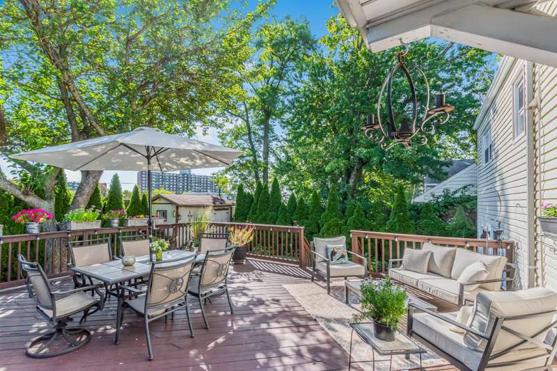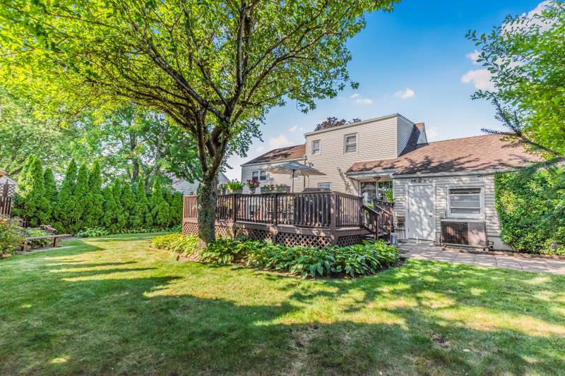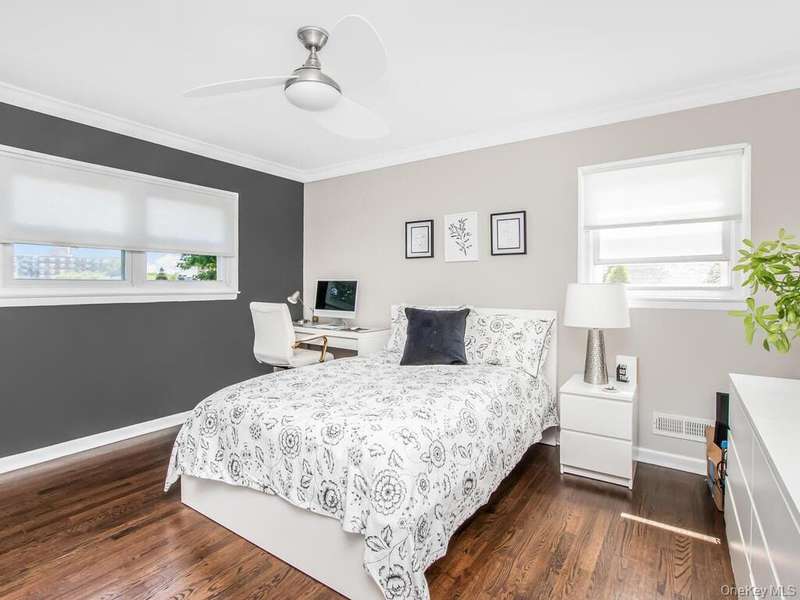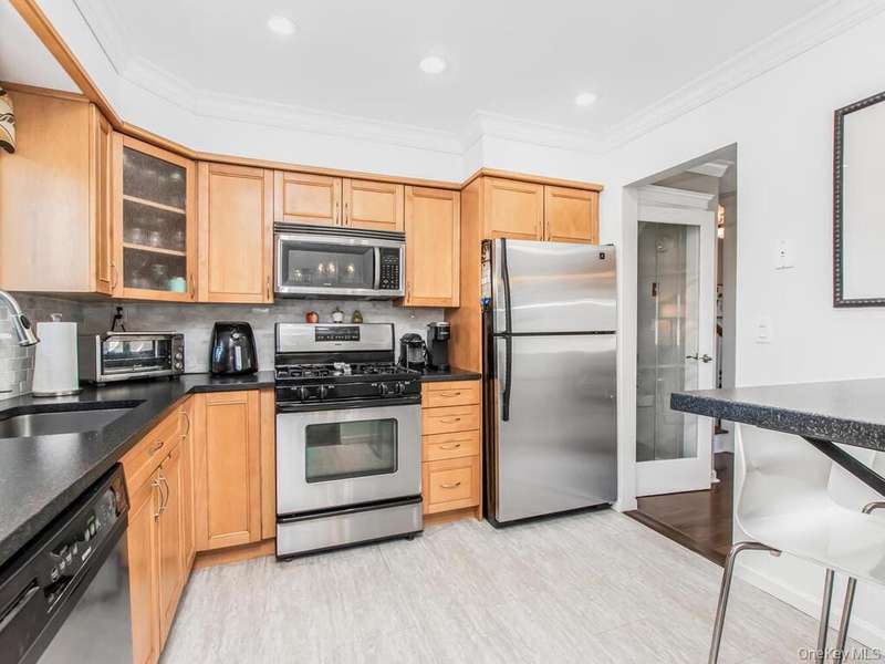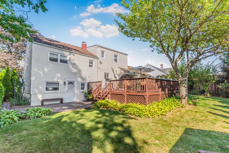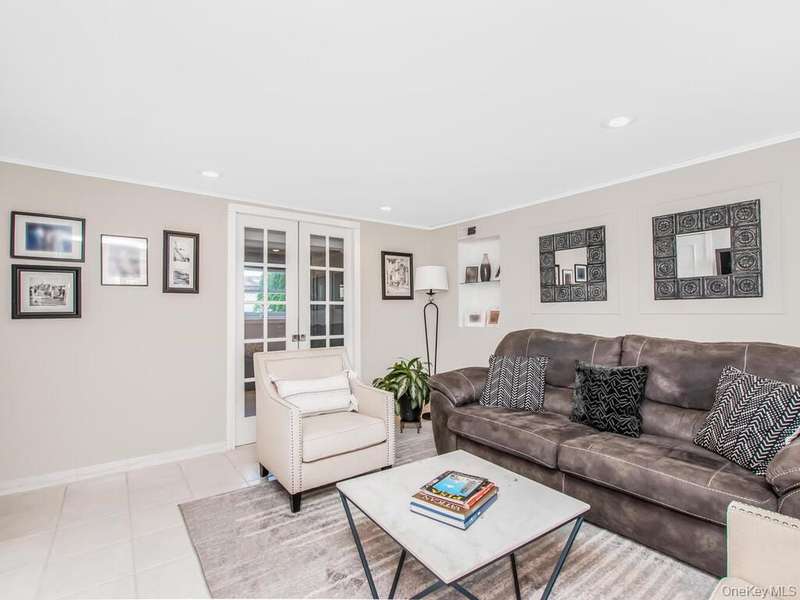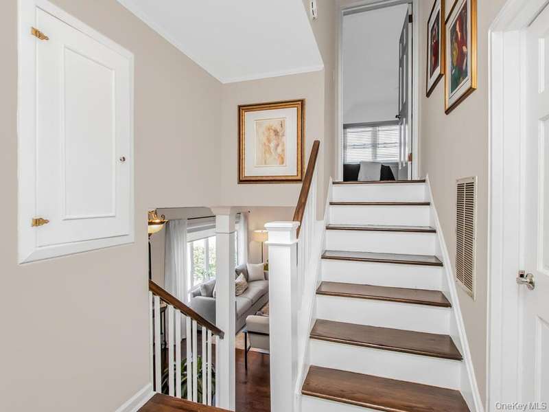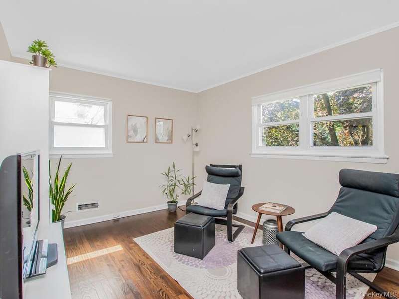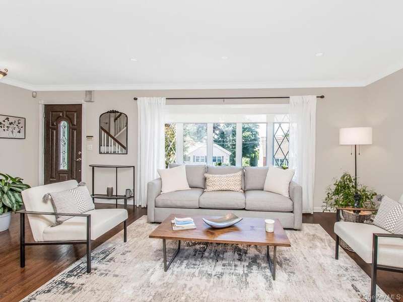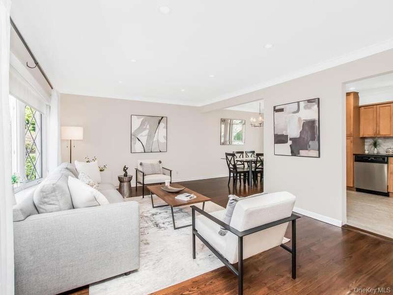 Welcome to this spectacular split level gem set above the road on gorgeous property featuring stunning wall to wall interior design . Main living level offers easy flow from large living room to eat-in kitchen and formal dining room. Bow window provides great natural light to this entire space. Eat-in kitchen features caramel cabinets, stone counters, gas range, stainless appliances, counter seating and views of the private backyard oasis. Formal dining room with glass sliders offers easy access to rear yard and deck. Two bedrooms and stunning bright white bath with soaker tub on second level. Private, spacious primary suite on upper level offers quaint vanity area and en-suite bath with soaker tub. Walk-in lower level offers large family room/recreation room, laundry closet, full bath, storage and access to rear patio area. Carefully designed expansive open air deck allows for several conversation areas perfect for large gatherings. Mature trees and perennial blooms surround front and rear gardens offering privacy and a beautiful natural landscape. One car attached garage with additional storage space. Amenities include family room, central air, hardwood floors, crown molding, attached garage, fenced yard, sprinkler system, alarm system, updated plumbing and electric. Nearby: Sprain Lake Golf Course and Grill, Central Park Avenue shops, Ridge Hill Plaza, local transportation, Manhattan Express bus, school, and many local restaurants.