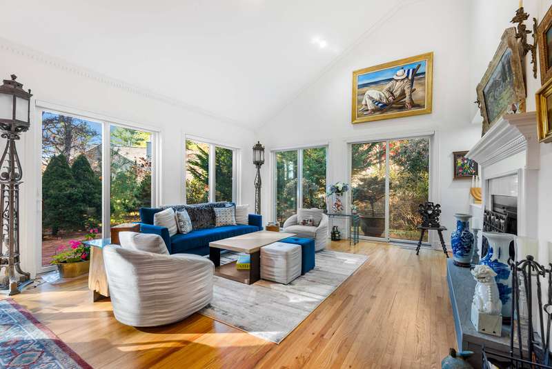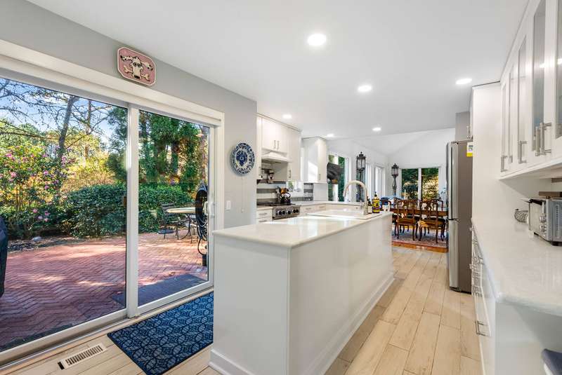 This one of a kind house nestled in this special enclave offers 4 bedrooms, 3 1/2 baths with the primary luxury suite on the first floor. The expansive open floor plan encompasses the cathedral living room with fireplace, generous dining area, and newly renovated kitchen. There is also an office/den area. The second floor offers 2 bedrooms, a bathroom and ensuite den. Also offered in this is package is a car with a beach permit, as well as access to the club house, gorgeous pool and pool area, tennis court and pickleball. One cannot help but enjoy the warmth and sunshine of the summer at this lovely property.