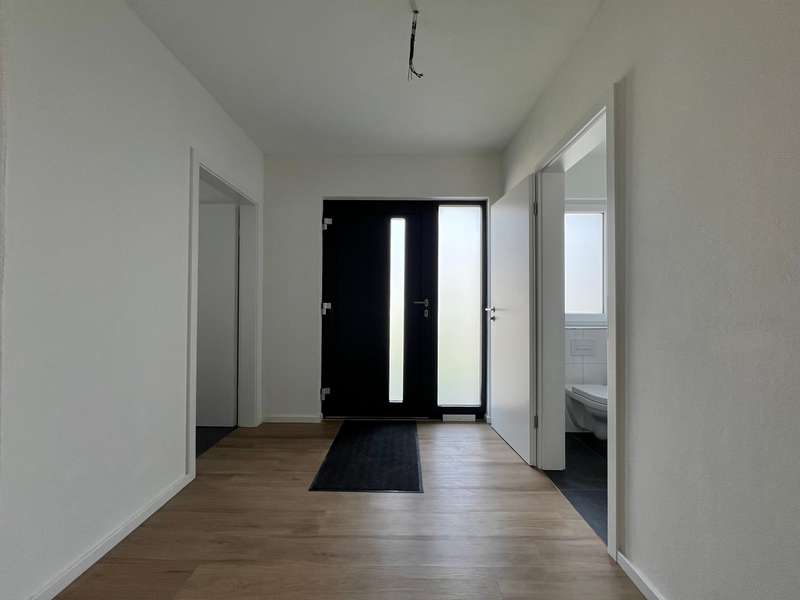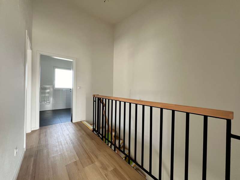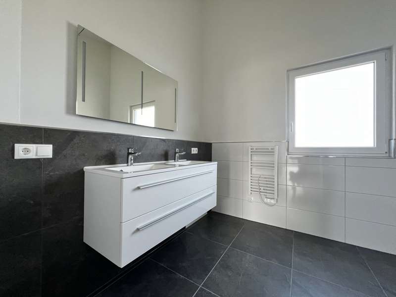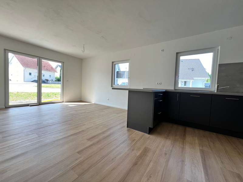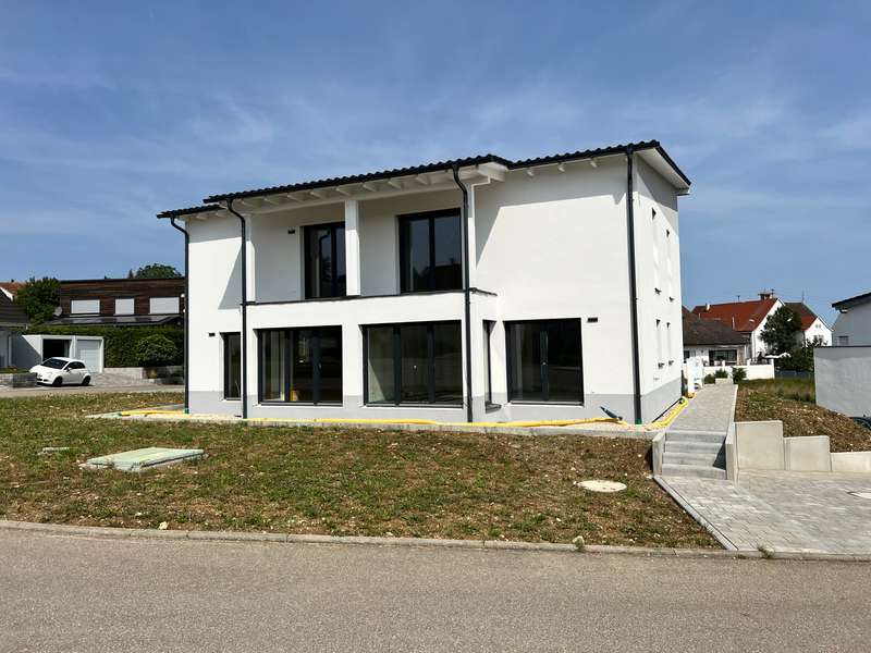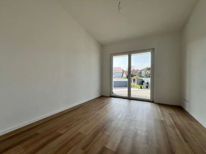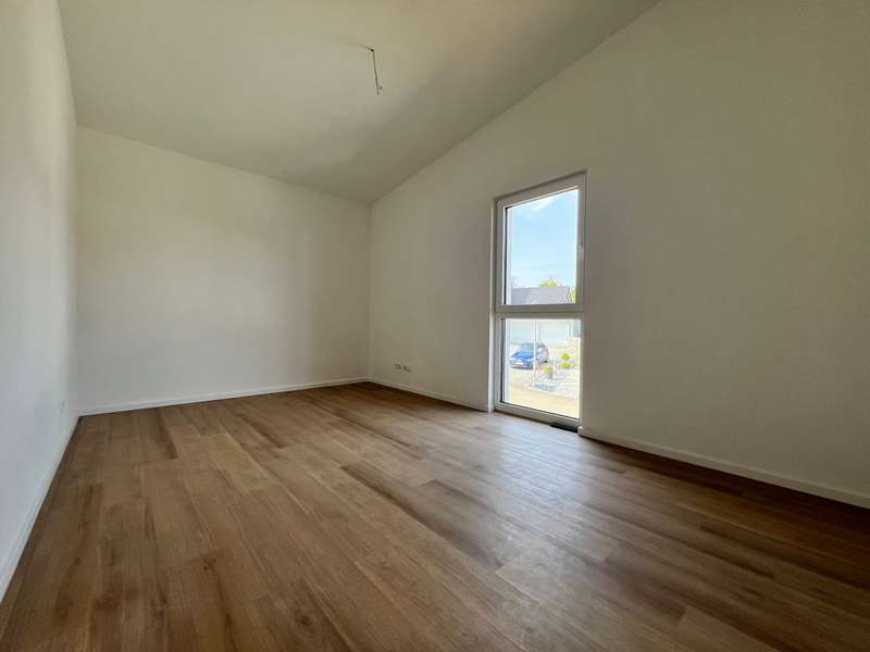 New build - semi-detached house with parking spaces and high-quality fittings, modern construction and energy efficiency. This new build impresses with its energy-efficient timber frame construction, combined with a modern air-to-water heat pump. Underfloor heating provides cozy warmth in all rooms, while high-quality shutters on the triple-glazed windows offer additional comfort and energy savings. The front door has a triple locking system, which not only provides security but also excellent insulation. The heart of the house is the open-plan living and dining area with floor-to-ceiling window elements that provide plenty of natural light and direct access to the terrace. Here you can enjoy a perfect combination of indoor and outdoor space. The modern fitted kitchen is not only functional, but also an aesthetic highlight. With its open-plan design, it offers plenty of space for cooking and socializing. It is well equipped with brand-name appliances (e.g. Bora) and meets all the requirements of a modern family. This is not included in the purchase price, but can be purchased for €10,000 on a negotiated basis. The combination of fine parquet flooring and large-format tiles gives the interior a modern, timeless character. The high-quality fittings are continued in the bathrooms, where elegant, modern bathroom furniture and high-quality fittings await you. The house has four rooms, including three bright and spacious bedrooms that are ideal for a family. The open staircase with solid beech steps connects the first floor with the upper floors and blends stylishly into the overall appearance of the house. The south-facing terrace and balcony offer wonderful hours of sunshine and invite you to linger outdoors. The garden offers plenty of space for leisure activities or relaxation. The large parking spaces round off the offer and provide sufficient space for two vehicles. This property is located in a quiet, family-friendly residential area that impresses with its relaxed atmosphere and proximity to all important facilities. Schools, nurseries and shopping facilities are just a few minutes away, as are leisure facilities and green spaces. This semi-detached house combines modern design, energy-efficient construction and a well thought-out room layout. Ideal for families who want to live in a quiet yet well-connected environment. A modern, comfortable home with a feel-good factor guaranteed! Contact us now for a viewing appointment!