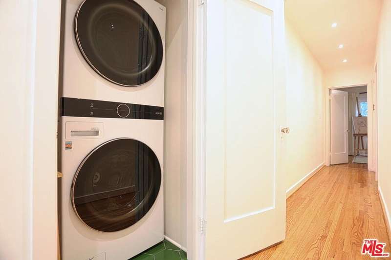Silver Lake 1929 Spanish Duplex . This remodeled lower unit offers many period details and some great new finishes and upgrades. The sunken living room features a huge arched window, unique sconces and charming original french windows. The fully remodeled kitchen includes stone counters, newer upgraded appliances (dishwasher, gas range with custom hood, and refrigerator), and thick oak floating shelves. The original narrow plank oak floors have been refinished after being covered for 30+ years. Enjoy your own LG washer dryer in closet with generous linen storage. 2nd bedroom has a private deck overlooking an inviting patio space below. Smart features include central AC and heat, nest thermostat, custom window coverings on all windows, and off-street parking for one car in the driveway. Great location near Whole Foods 365 Market, Silver Lake Wine, The Red Lion and Ginger Grass. Come to one of the open houses on Saturday 11/15 between 1-3 pm or Sunday 11/16 between 1-3pm