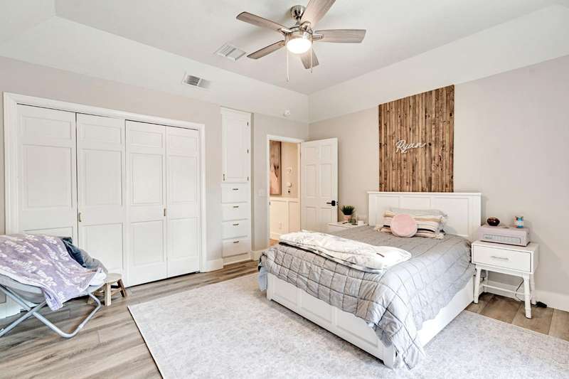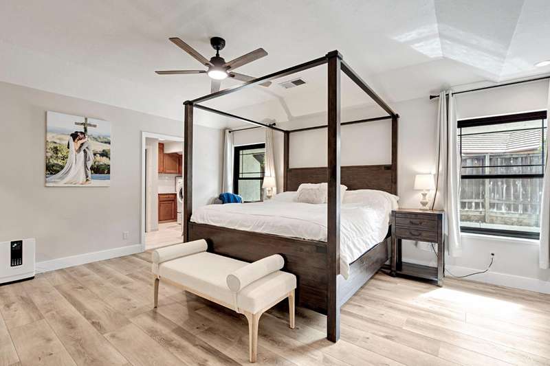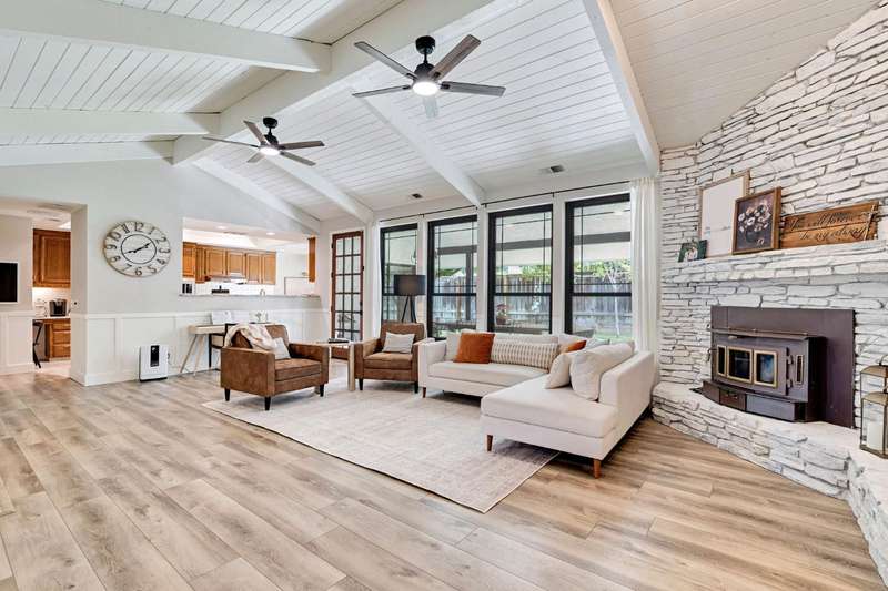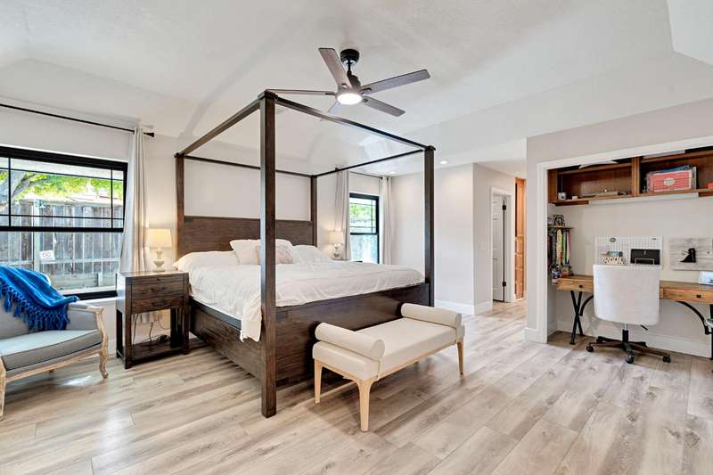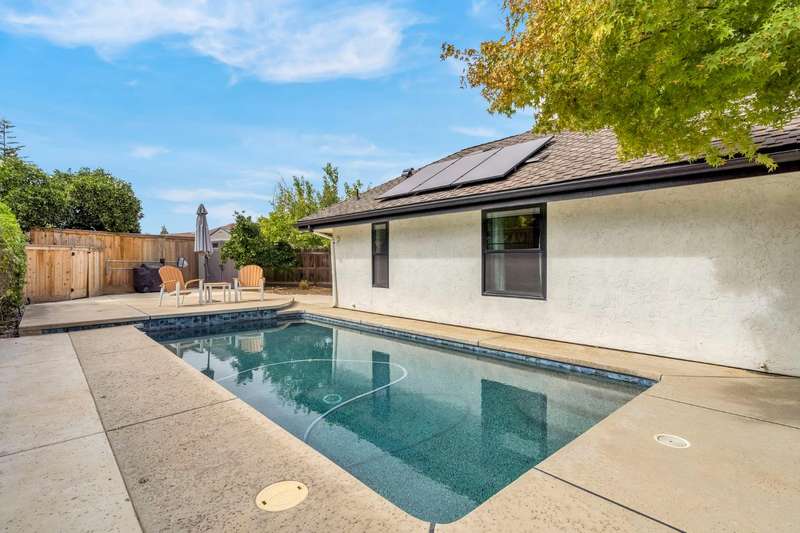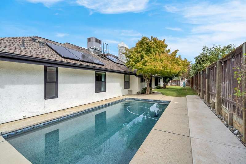 Tucked away at the end of a quiet cul-de-sac, this custom-built mid-80s residence has been thoughtfully updated to combine timeless craftsmanship with modern comfort. Offering 2,917 sq.ft. of living space, 4 bedrooms, and 3 bathrooms, the expansive layout is both warm and functional.You can close off the pocket door in the main living room and have a sense of two different living spaces. Large laundry room is convenient located near all of the bedrooms with a separate access to the covered patio.Inside, you'll find newer vinyl plank flooring throughout most of the home, custom Milgard windows, and fresh paint inside and out. The kitchen features updated granite countertops and a walk-in pantry, while new light fixtures and ceiling fans bring a fresh, modern touch. Two HVAC systems including one recently replaced with new ducting to ensure year-round comfort.The oversized 2-car garage includes extra built-in storage and flexible space for a workout area or hobbies. Outdoors, the home truly shines with a New Image Pool Interiors, Inc. resurfaced volleyball pool, newly poured concrete, covered patio, and landscaped grounds for the perfect setting for entertaining, relaxing, and creating memories.Blending quality construction with stylish updates, this cul-de-sac retreat offers a lifestyle as inviting as it is functional. Schedule your private showing today and see all it has to offer.