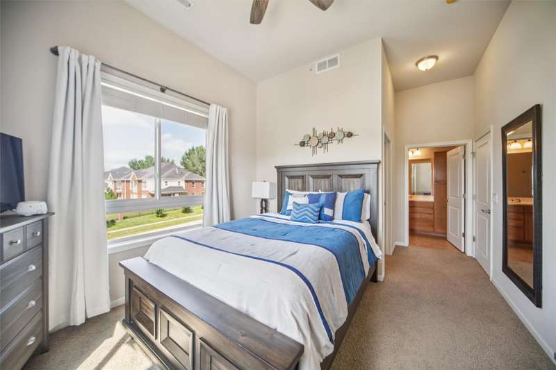 Enjoy convenience, comfort, and style in this 2-bedroom, 2-bath condo located just steps from Jordan Creek. Positioned on the 3rd floor for added privacy, this home boasts soaring 12-foot ceilings, oversized windows that flood the space with natural light, and a spacious layout perfect for everyday living. The kitchen features tall cabinetry for extra storage, while the laundry room adds everyday convenience. The primary suite offers a generous walk-in closet and an updated bathroom with a tiled shower. A second bedroom, also with its own walk-in closet, is perfect for guests or a home office. Step outside to a private patio and take in gorgeous views and unforgettable sunsets. Homeowners enjoy secured building access, affordable dues, and beautifully maintained grounds. One car detached garage and HSA 7 star warranty included! All this, just minutes from Jordan Creek, West Glen, and everything West Des Moines has to offer!