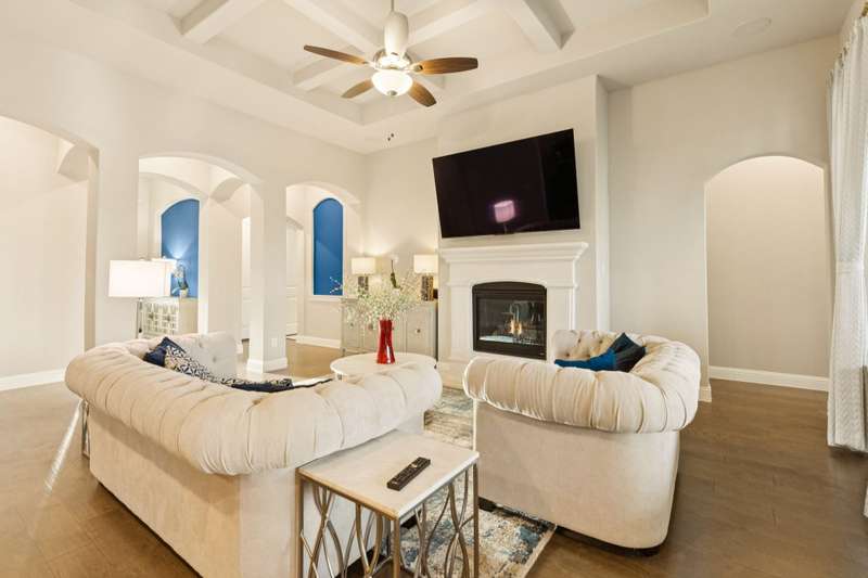 PID 100% PAID Luxury, Lifestyle, and Location Welcome to Mustang Lakes This modern Tudor by Coventry Homes sits on a premium oversized corner lot in the award-winning Mustang Lakes community of Celina, TXfacing a serene greenbelt and just steps from a scenic, stocked pond. Unlike surrounding neighborhoods, Mustang Lakes offers resort-style living with unmatched amenities: a world-class clubhouse, fitness center, pools, lakes, tennis courts, trails, and community events that bring neighbors together. Inside, youll find a thoughtfully designed 4-bedroom, 3.5-bath layout with open-concept flow and upscale finishes. The gourmet kitchen with coffee bar corner for everyday start ups, a gas cooktop, and a huge walk-in pantry. The spa-inspired primary suite features his-and-hers vanities and an oversized shower for everyday luxury. What truly sets this home apart is the generational suite with bedroom, lounge room and private bathroom and option for a kitchenette. Perfect for multi-gen living or long-term guests, it offers rare flexibility in a single-story home. In Mustang Lakes, youre not just buying a homeyoure stepping into a vibrant, master-planned lifestyle with scenic beauty, top-tier amenities, and a strong sense of community that outshines the rest.