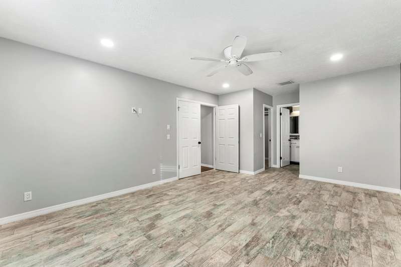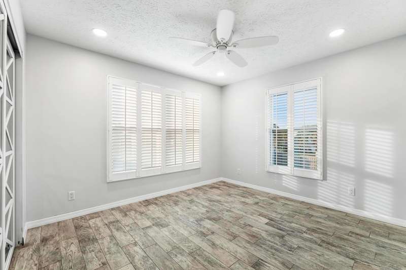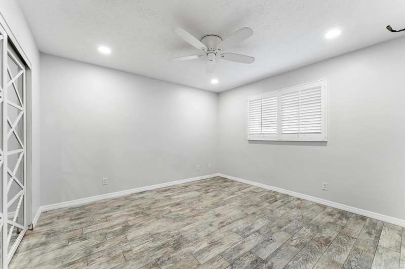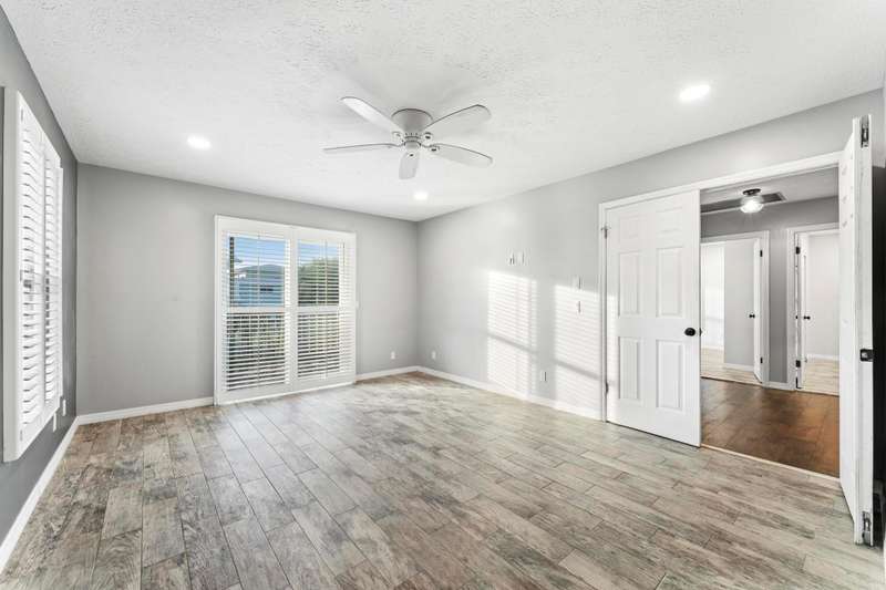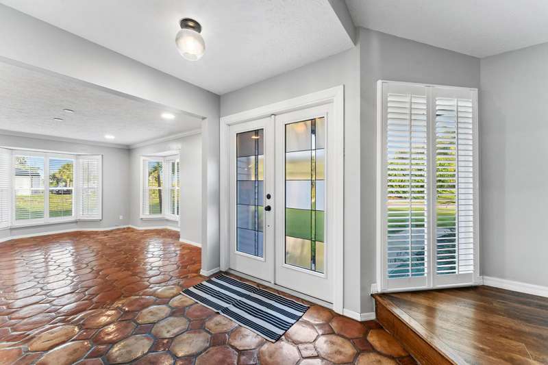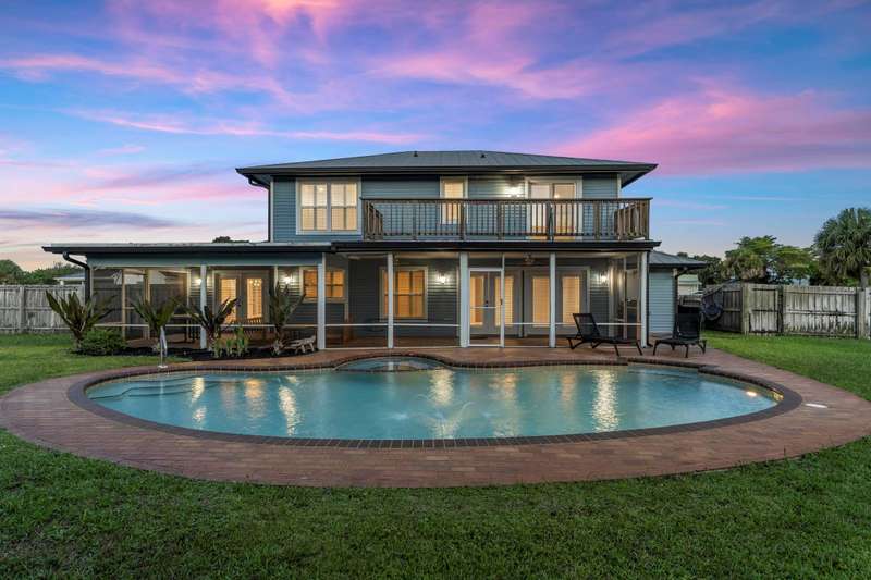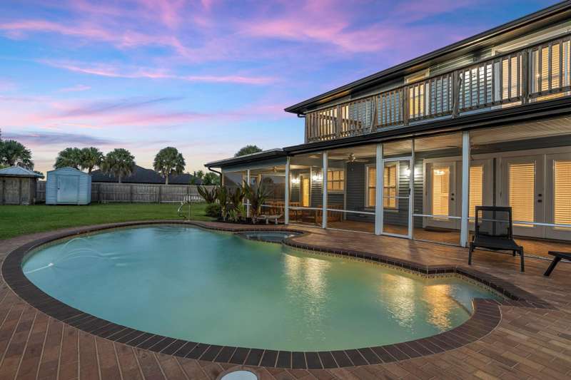 Beautifully renovated residence on a .55-acre water-view lot featuring 4 bedrooms and 3 full bathrooms (appraisal shows 3 beds, thanks to a thoughtfully converted garage bedroom that can easily revert to a 2-car garage if needed.). Upgraded in 2020 with impact-rated doors and windows, plantation shutters, recessed lighting, gutters, new A/C, irrigation with timer, grey tile and new appliances. Outdoor living shines with a refreshed pool (new piping), spa (heat pump 2018), full cabana bath, and two sheds. Major utilities include a 50-ft well (08/13/18), water softener/carbon system (06/17/19). Enjoy a new shared community dock access for boating (only a handful of homes in the HOA and potential for dock extension), without the maintenance of a private dock.