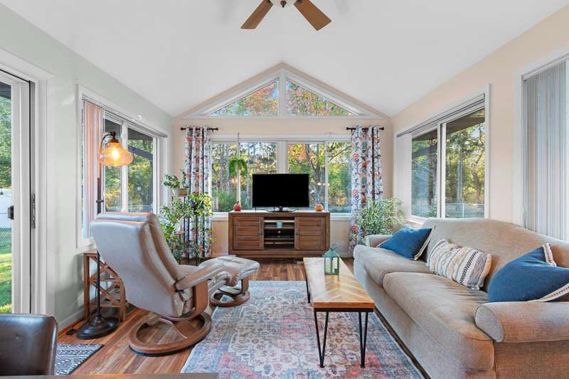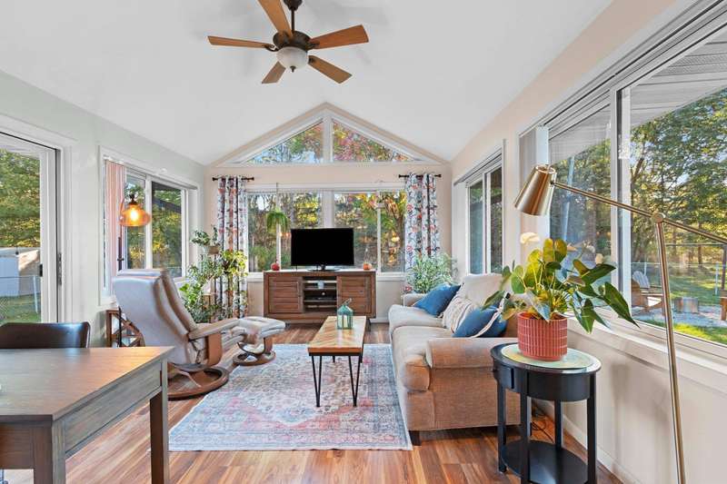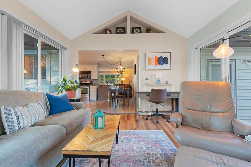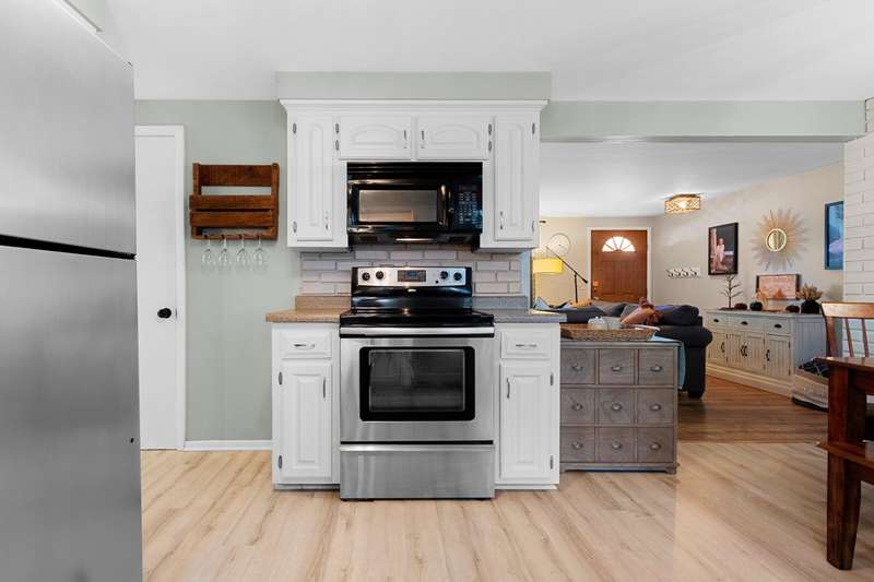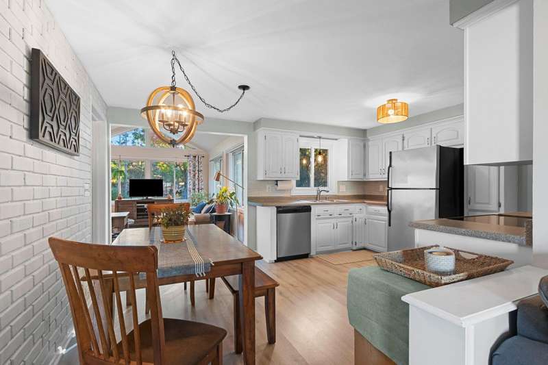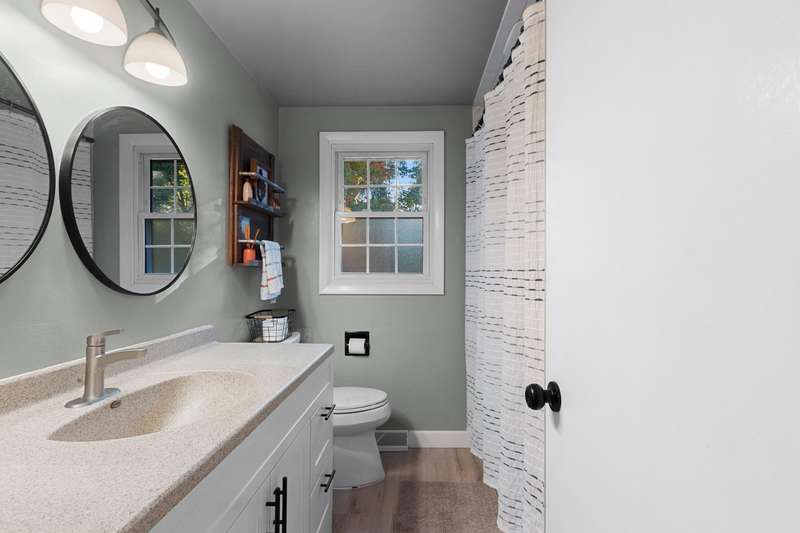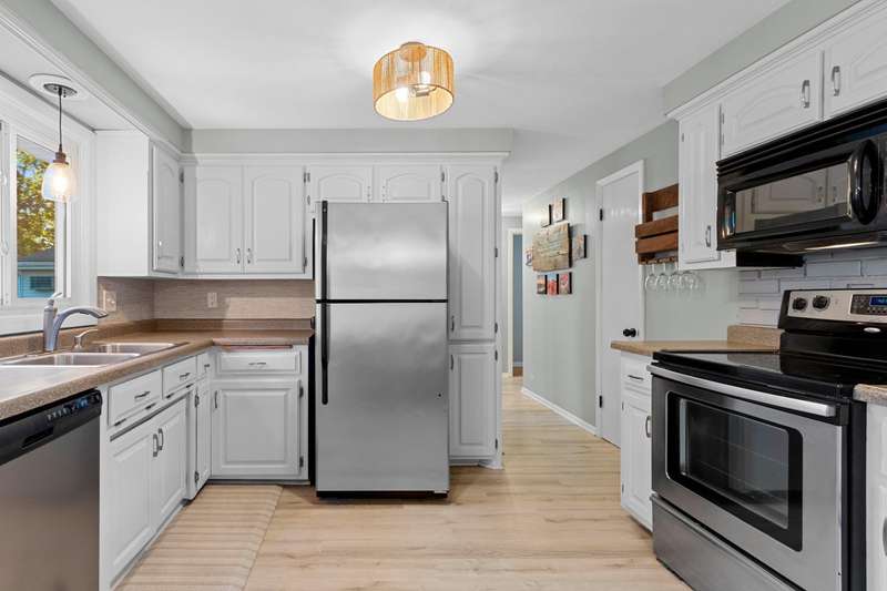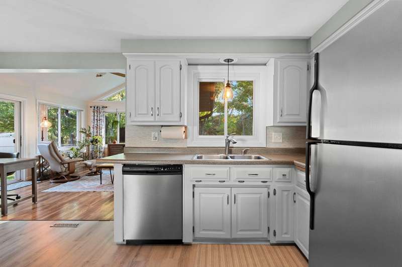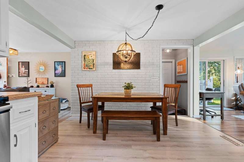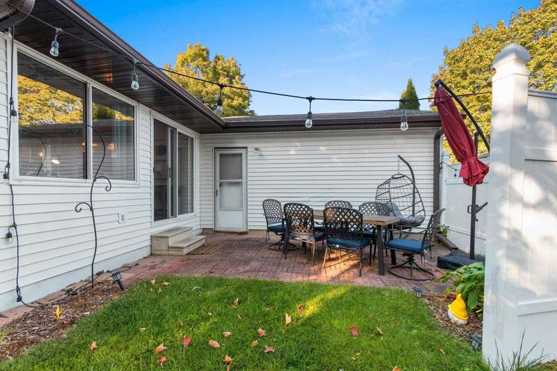 Warm & inviting well cared for ranch home in prime Allouez location. Enter the living rm with LVP floor & large bowed window providing lots of natural light. Kitchen/Dining with LVP floor, brick accent wall, white cabinets, SS appliances. You will fall in love w/the bonus 4-seasons room with vaulted ceiling. Enjoy views of the fenced backyard with brick patio/firepit area & woods with the occasional deer visitors. No backyard neighbor. Bedrooms have hardwood floors, full bath with tiled shower & 2020 updates include vanity, counter, sink/faucet, toilet & LVP flr. Finished FR in lower level. Attached 2 car gar w/floor drain. Extensively updated: roof 2024, C/A 2023, wtr htr 2022, gutters 2017, sump pump 2024 & lighting. New street & utilities project to be completed in Oct.