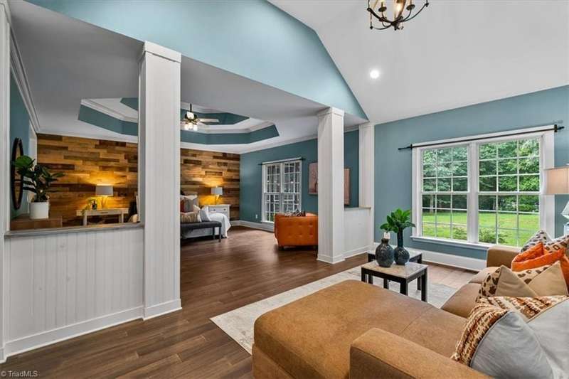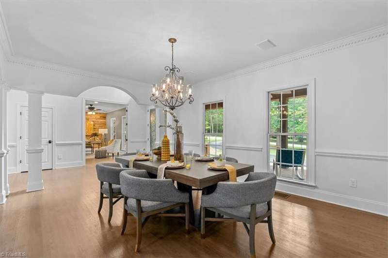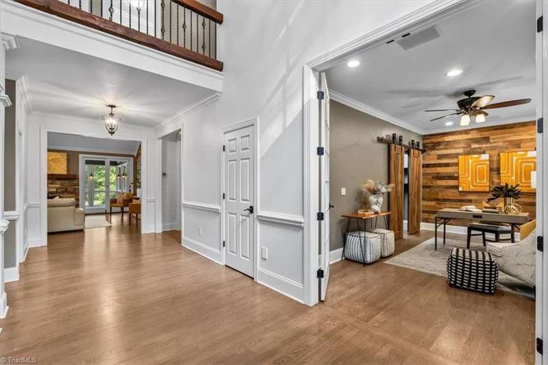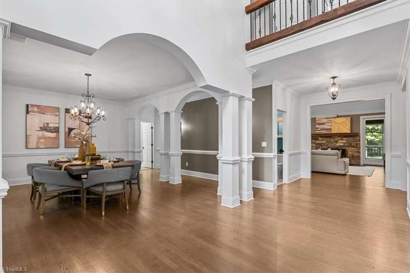 Stunning Summerfield retreat that blends luxurious interiors with a backyard paradise. The home offers all the musthave spaces for todays lifestyle, including a private home office and a large dining room. The great room with vaulted ceilings and a stacked-stone fireplace flows effortlessly into the chefs kitchen, complete with marblecounters/backsplash, a large island, induction cooktop and vent hood. Beautiful main-level primary suite, features a spacious sitting area with vaulted ceilings, 2 custom walk-in closets and a spa bath with soaking tub and heated floors. Upstairs, youll find 3 additional bedrooms with newly updated baths, a large bonus room with walkout deck access, and a versatile flex space. Step outside to your private backyard oasisan entertainers dream. A stunning screened porch opens to multiple outdoor living areas, including a spacious open deck with pergola, a covered deck with sunken hot tub and bar seating, all overlooking the fenced backyard.