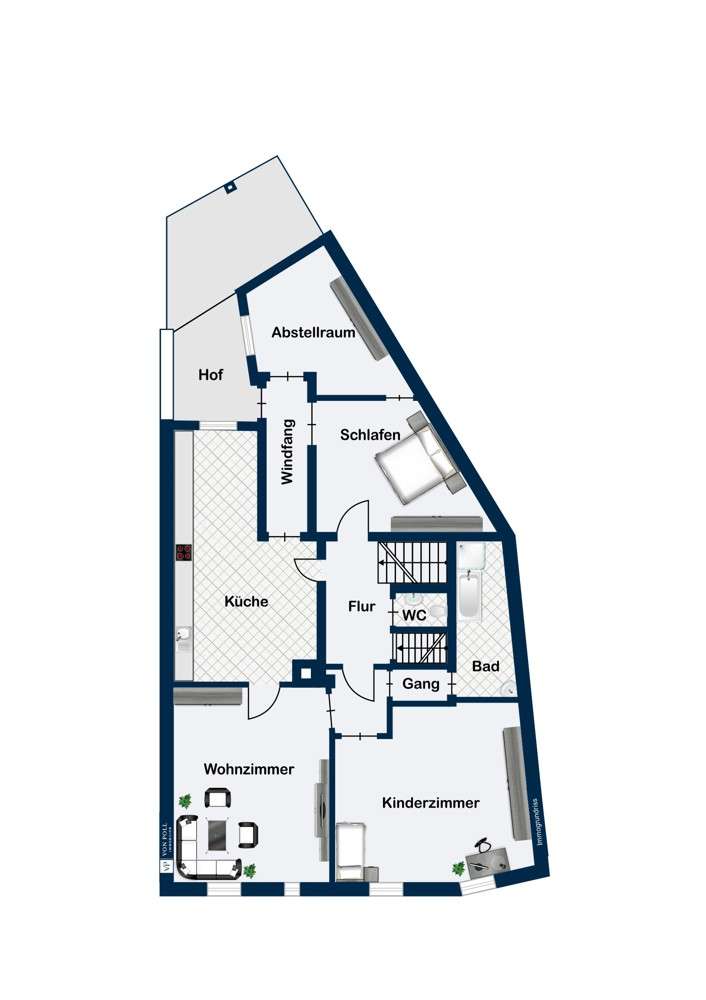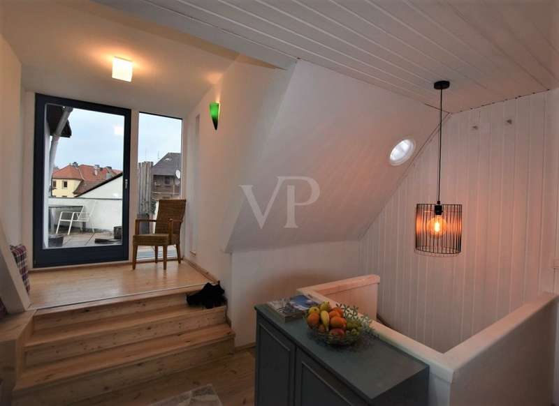 The residential and commercial building is located directly in the center of Ansbach in the immediate vicinity of the train station. The property with a partial basement was built around 1886 in solid construction on a plot of approx. 130 m². The building was constantly rebuilt and extended from 1966 and 1970. The property cleverly combines living and working on three floors to a coherent overall concept. The store unit with separate entrance on the first floor comprises approx. 95 m². The large shop windows ensure optimal opportunities to present your business. You will definitely be seen here. The existing fireplace stove contributes to the stylish ambience and spreads additional pleasant warmth in the winter months. In the rear area of the commercial space there is also a small office space, a workshop area, storage facilities and a toilet in the stairwell. The store is currently used as a retail store. For the future, any other type of retail and many other use variants are conceivable, e.g. art, studio or craft services such as cobbler, tailor or locksmith. The upstairs apartment offers you an exceptional floor plan. You enter the unit from the hallway and are directly in the spacious kitchen with functional fitted kitchen. A small pantry is also available. From the kitchen you enter the cozy living/dining area on the left and the covered balcony on the right. Leaving from the hallway you reach the bathroom with tub, shower, sink and washing machine place as well as the separate toilet. Also on this level is a bedroom, also with balcony access and another room that could be well used as a small office or utility room. Another spacious bedroom perfectly completes this apartment. One floor higher, the attic apartment awaits you. The large roof terrace and the view over the rooftops of the city are undoubtedly a highlight. The heart of the cozy penthouse apartment is the modern kitchen with the open living room. The spacious kitchen with wooden floorboards, equipped with a functional modern fitted kitchen, is directly adjacent to the slightly elevated living area. In addition, this floor has an updated daylight bathroom with walk-in shower and two spacious bedrooms. The urban large roof terrace completes this floor. There is room here for your seating set and a barbecue. Hobby gardeners decorate the terrace with various potted plants and your own herb raised bed. Have we aroused your interest? Convince yourself of the potential and the special features of this residential and commercial building on site. If you are seriously interested, we would be happy to arrange a personal viewing appointment in consultation with the residents. Please send us a completely filled out contact request with your telephone number by e-mail. We are looking forward to meeting you.