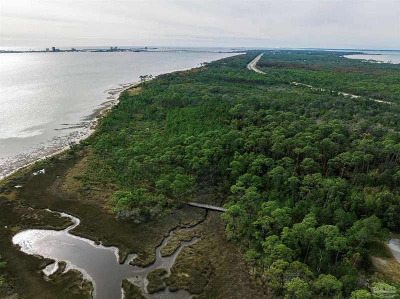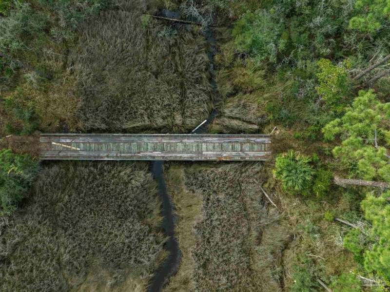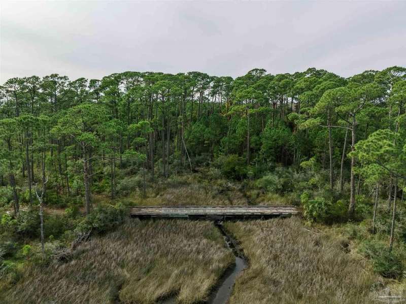 Waterfront and forest lot in Gulf Breeze on Santa Rosa Sound. Unique lot and location to build your dream home. This opportunity offers both waterfront living with fantastic sound views and the forest of the Naval Live Oaks Nature Preserve with access to over 7 miles of hiking trails! A true nature-lover's paradise filled with mature trees, sawgrass, and with a continuously running spring, which attracts abundant wildlife. Access via private drive and bridge over estuary to partially-cleared lot. Home will require piling construction and further permitting prior to construction. Bring your love of nature and your imagination!