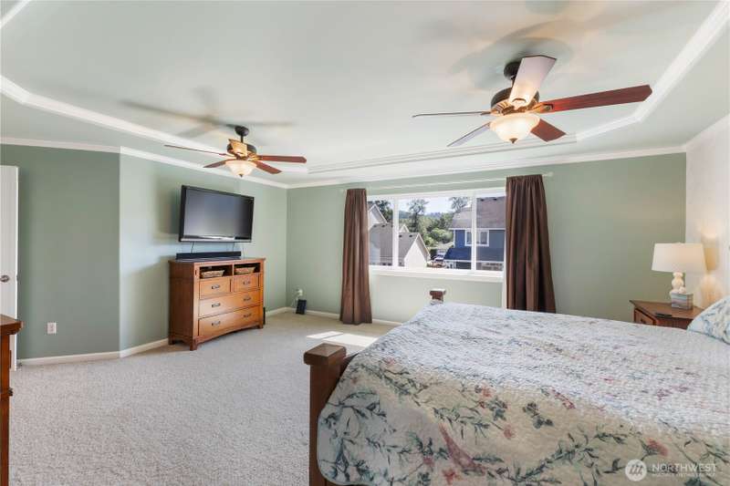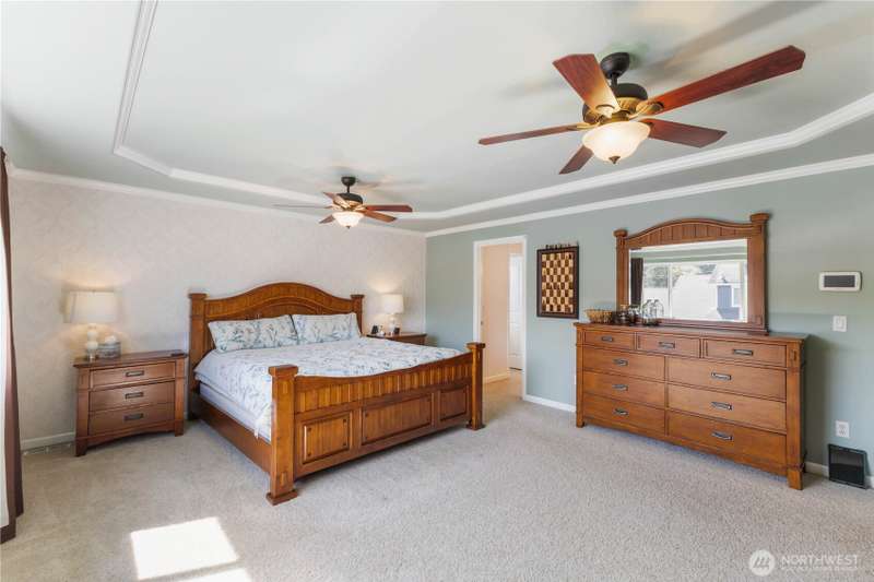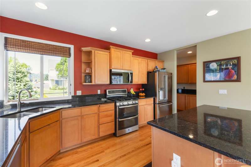 Beautiful 5BD/2.5BA, 3,384 sq ft home on a quiet, sidewalk-lined cul-de-sac! Open layout with French doors leading to a soaring entry, spacious great rm w/gas FP, dining w/wainscoting & coved ceiling, main floor office, and chef’s kitchen w/granite counters, island w/breakfast bar, stainless appliances, butler’s pantry & dining nook. Upstairs media rm w/screen & equipment or use as a 5th BD, Murphy bed in 4th BD, and a generous primary suite w/5PC bath & walk-in closet. Tandem 3-car garage w/workspace, generator-ready, fenced & landscaped yard w/hot tub. Heat pump for year-round comfort. Check out the photos with add info. With all this space there are endless possibilities! Multigenerational living, Adult Family Home or in home business!