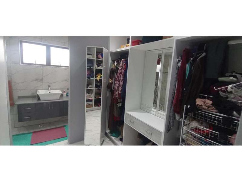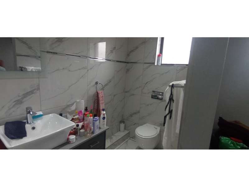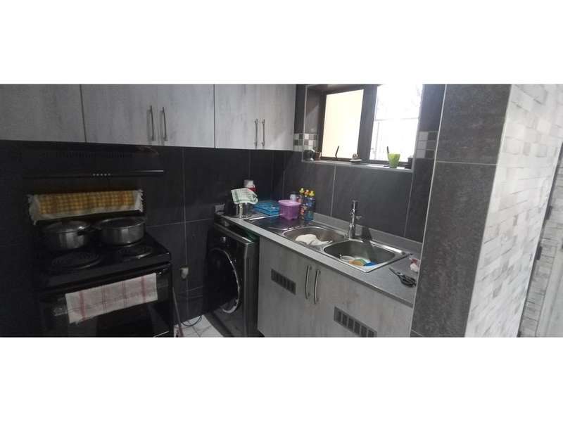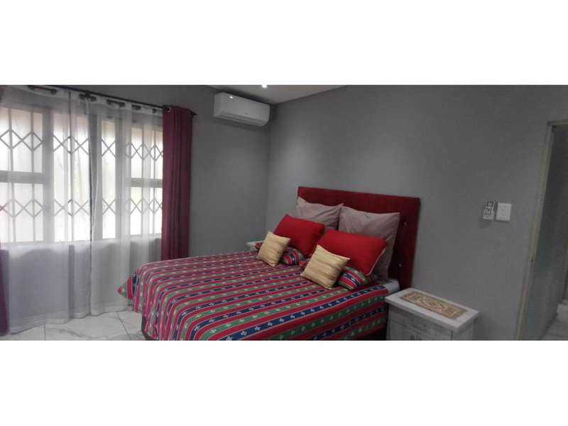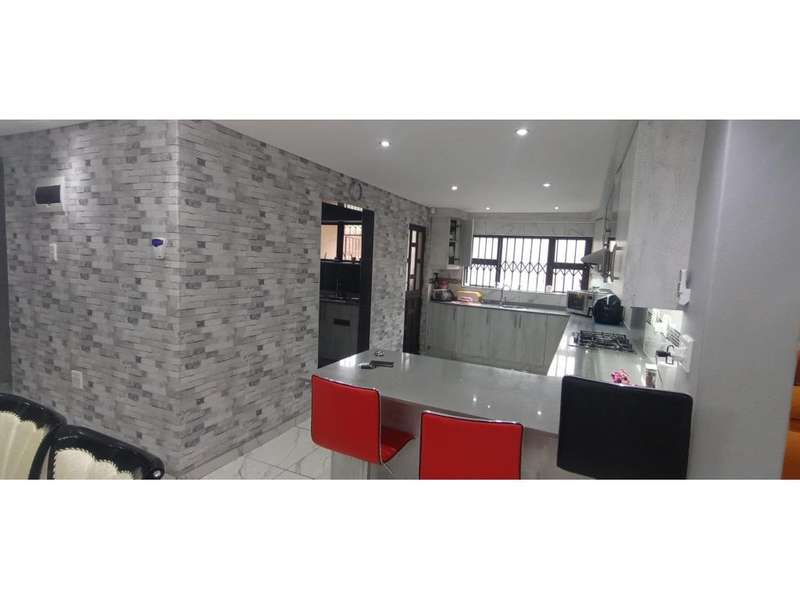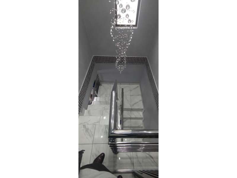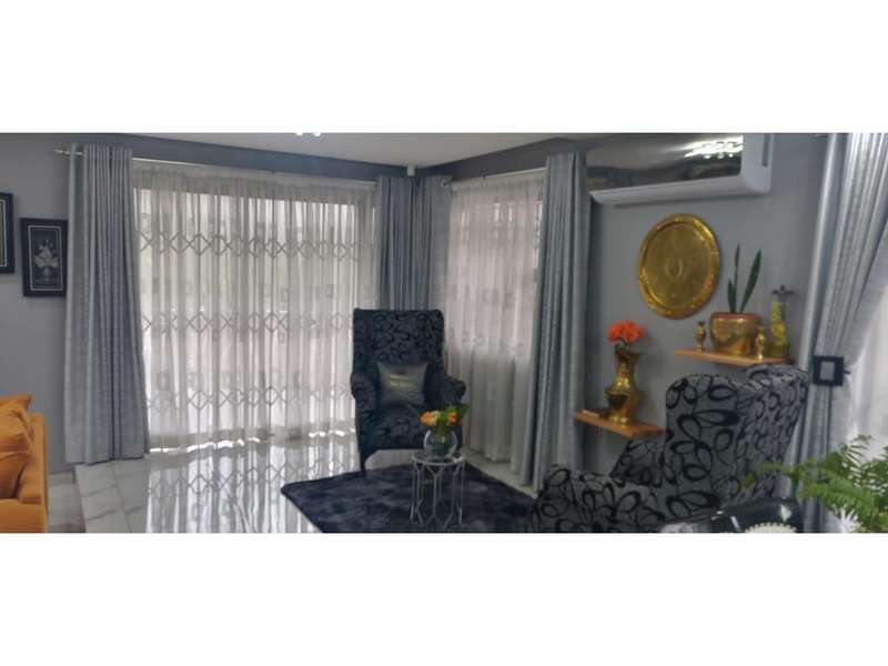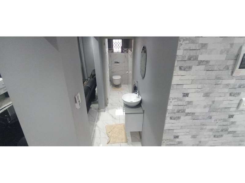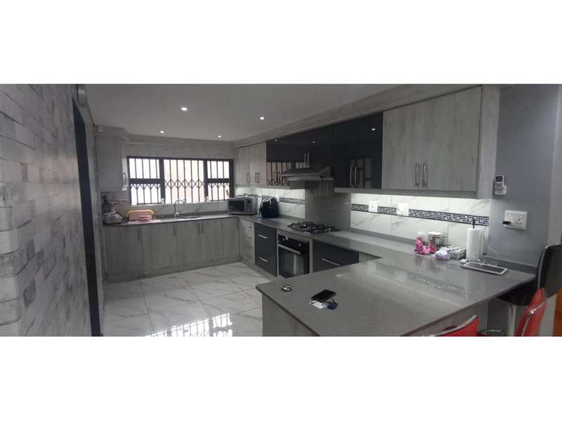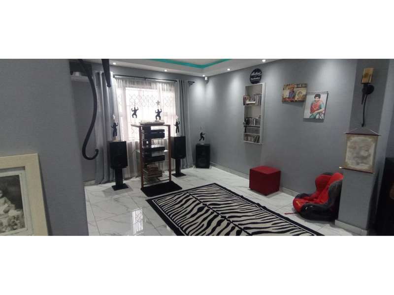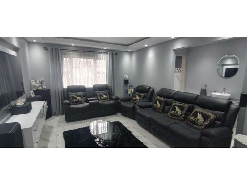 Looking for a beautiful and spacious four-bedroom double-story house? Look no further! This lovely property has two entrance areas that lead to a private lounge, dining room, and open-plan kitchen with a scullery. You'll also find a music and TV lounge with a built-in TV and bulkhead calling with channeling x6 (2 with Bluetooth) downlighters, air-conditioners, and strobe lights. This house is equipped with all the modern amenities you need, including a 5.5 KVa inverter and jojoTank, as well as quartz surfaces on all countertops in the kitchen and bathrooms. There are five air conditioners in total, including two downstairs and three in the bedrooms. Upstairs, you'll find four bedrooms, each with a walk-in closet and an ensuite shower wash base on a floating cupboard with quartz countertops. For added security, there are trailer doors on both the upstairs and downstairs entrances and all windows are sand-blasted. The main house has a bulkhead ceiling with chandeliers x6 (2 with Bluetooth), downlighters, and air-conditioners, with beautiful wallpaper in the kitchen and private lounge. There's also a built-in braai stand, an excellent drainage system, and a security camera monitoring system on-screen upstairs and downstairs. The property is surrounded by a boundary wall with double gates motorized and electric fence, a double garage with a motor, a double carport on the two flatlets and the main house, and an entertainment area. Two additional 3-bedroom flats with lounge, open plan kitchen dining room, shower and toilet, washing basin, and prepaid electricity complete this impressive property.