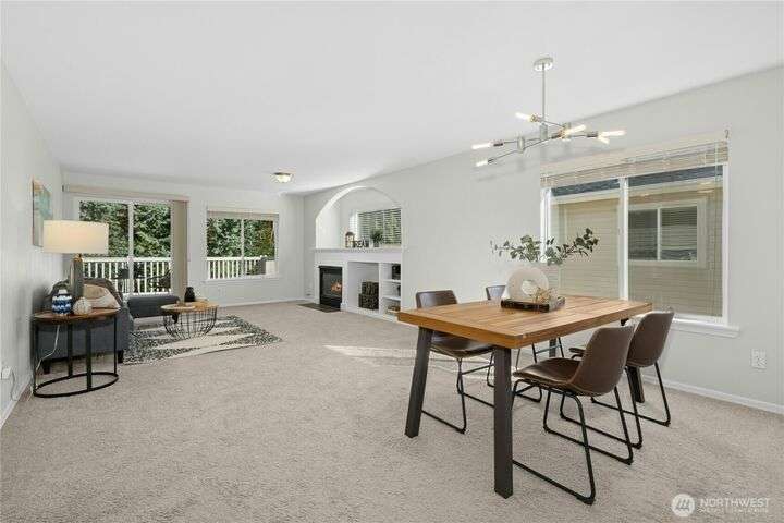 Discover the perfect blend of comfort, style, and convenience in this beautifully maintained end-unit townhome. Ideally located just minutes from Paine Field, Costco, and with seamless access to I-5 and Highway 99, commuting is a breeze. The spacious single-level layout features 3 bedrooms and 1.75 baths, with a bright kitchen and cozy living room that make everyday living effortless. Step out onto your private deck and unwind with peaceful views of green. The kitchen shines with quartz countertops, a sleek glass tile backsplash, and stainless steel appliances. The inviting primary suite boasts large double closets for ample storage. As an end unit, enjoy enhanced privacy and abundant natural light throughout. Newer Roof. No rental cap