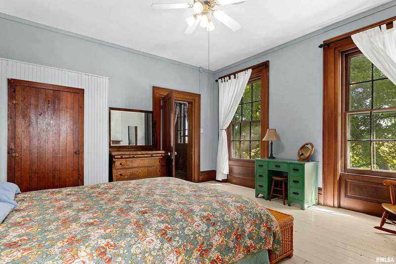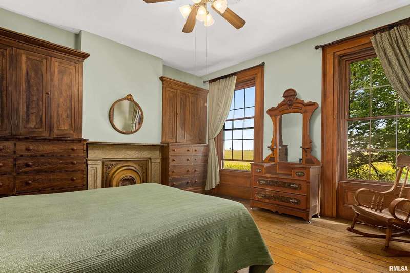 Step back in time & enjoy this REMARKABLE home! You will love the gorgeous sunsets from the backyard/serenity at its finest. Neat property surrounded by trees making this your private sanctuary. This home features tall ceilings, transom windows, hardwood floors, ornate fireplaces (all have been bricked/closed off EXCEPT for the gas log FP in family room), dry sink in pantry storage, huge bathrooms, 10 newer windows, partial house generator, family room w/12' sliders to patio & 2.5 car garage. Water heater 2020, water softener & well pump 2022. Walk up attic where there is room for more storage along with a hatch to the roof. New 2018-2025: dishwasher, dryer, front yard fence, 10 windows, pump & pressure tank, septic system, water heater, water softener, main roof 2015/addition roof 2021, generator 2016 & much more! (No closet in BD#4) Definitely a one of a kind home just waiting for the next new lucky homeowner. Elmwood schools.