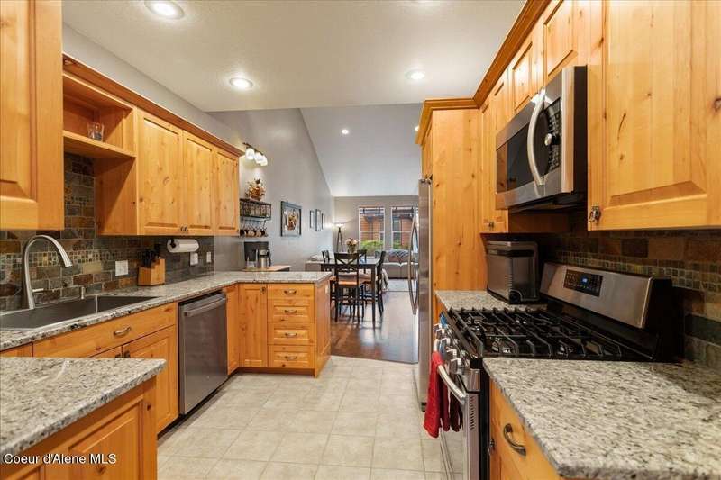 Discover the perfect blend of luxury, comfort, and convenience in this beautifully updated 1,867 sq/ft townhome located in South Sandpoint's premier gated community, Forest Park. Just minutes from downtown, Lake Pend Oreille, and Schweitzer Mountain, this home offers an exceptional lifestyle in one of the area's most desirable neighborhoods. Featuring 3 bedrooms, 3 bathrooms, with a versatile open floor plan, and has been tastefully updated with custom finishes throughout. Enjoy LVP flooring, vaulted ceilings, and abundant natural light. The well appointed kitchen showcases granite countertops, knotty alder cabinetry, stainless steel appliances, and easy access to a conveniently located laundry room. The main-level primary suite offers privacy and comfort with dual closets and a spa-like en suite bath, complete with soaking tub. Upstairs, you'll find a spacious loft—ideal as a second living area, home office, or media room—along with two additional bedrooms, and a full bath. Stay cozy year-round with efficient hydronic in-floor heating. The attached 2-car garage provides direct access and added storage, while the HOA takes care of exterior maintenance, landscaping, and snow removal. Forest Park offers peaceful walking paths and shared green spaces perfect for relaxing or entertaining. A rare opportunity for a turnkey home in a prime Sandpoint location!