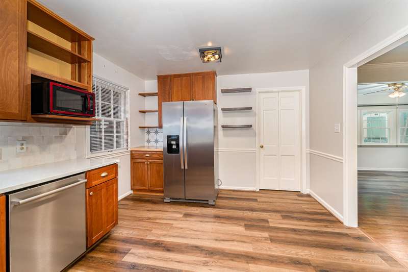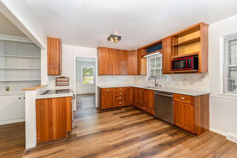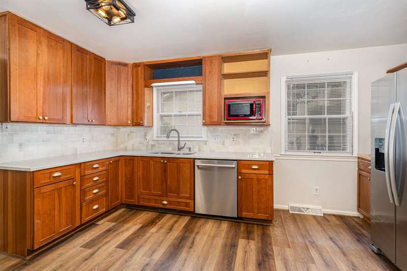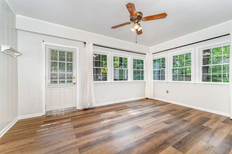 See the charm and convenience of one level living in this classic 3 - bedroom, 2 - bath, all brick ranch home in the heart of Green Valley. This beautiful home features original hardwood floors, updated Luxury Vinyl Plank flooring in the kitchen and sun room, and a spacious, inviting layout. Highlights include a cozy den with a wood-burning fireplace, a bright sunroom overlooking a beautifully landscaped backyard and patio - ideal for relaxing or entertaining. Conveniently located near Friendly Shopping Center, parks, and major thoroughfares, this home offers comfort, style, and timeless appeal.