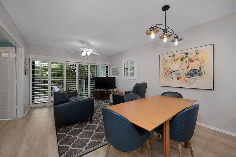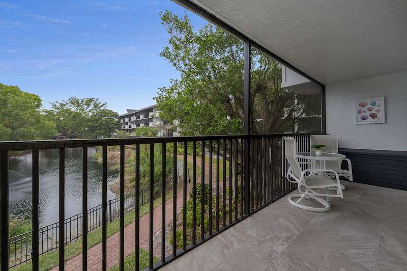 Live on vacation! Remodeled and maintained beauty! Turnkey end-unit condo with a screened lanai overlooking a beautiful lake with water feature. In unit laundry! All hurricane impact windows and sliders. Park Shore Resort has a liberal rental policy- 365 days with a minimum of one day! Onsite Hogfish Harry's Restaurant, clubhouse, and resort-style heated pool with waterfall features, perfect for entertaining family and friends. Other amenities include a whirlpool spa, well-equipped fitness room, tennis, pickleball, volleyball, and a library. Great location west of 41, 15 min stroll to the beach, and Venetian Village for shopping and restaurants.