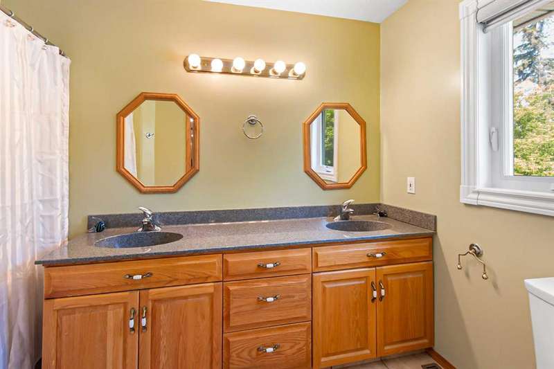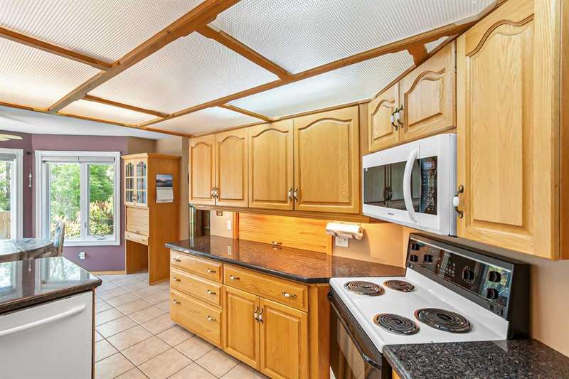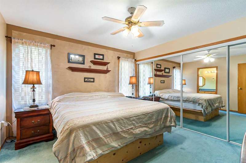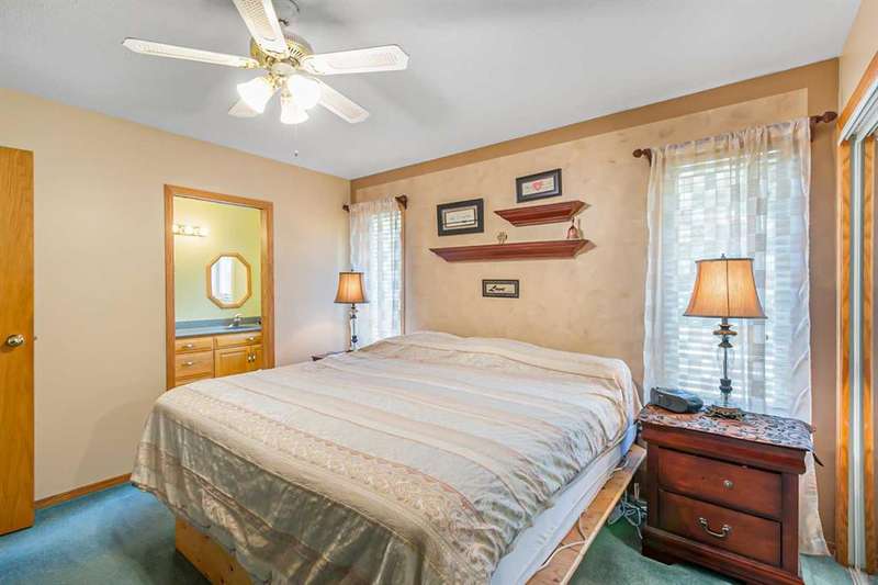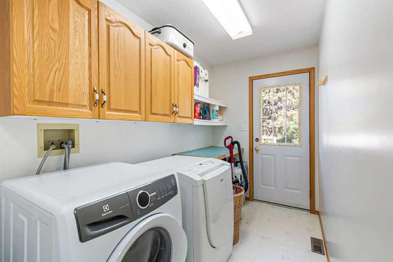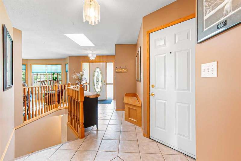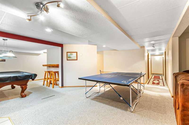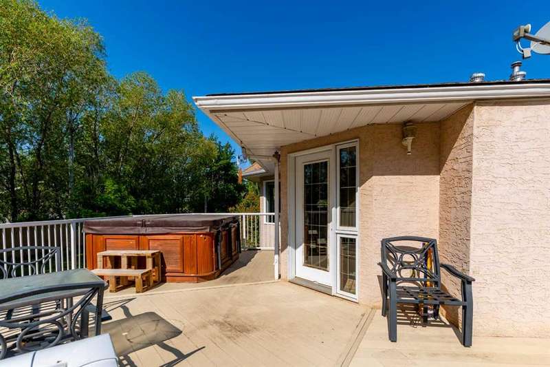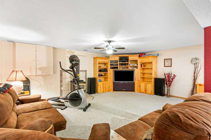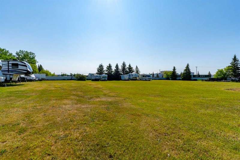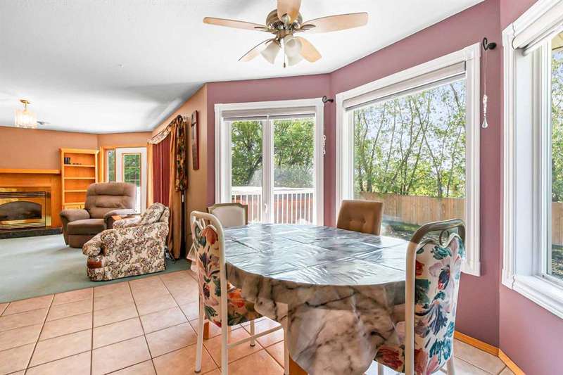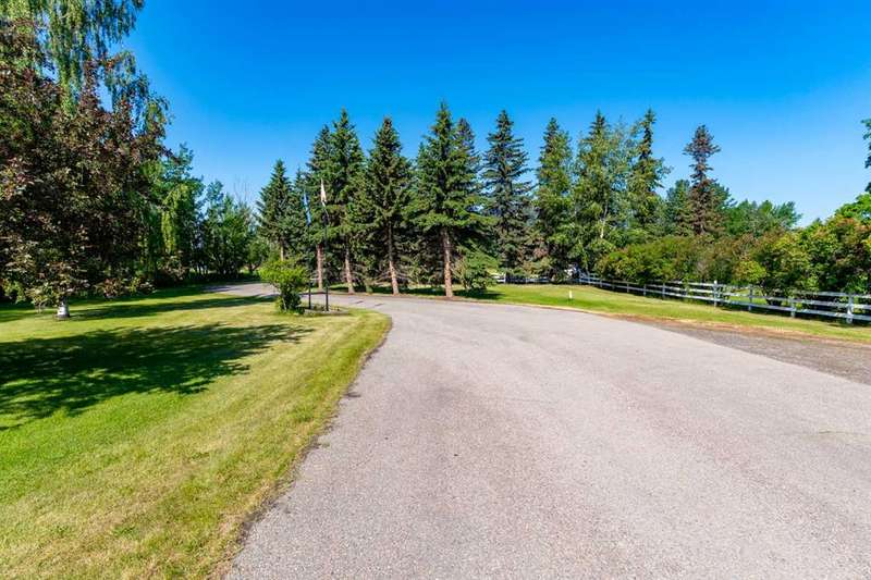 Tucked away on a spacious 2.61-acre lot within the Town of Olds, this unique property offers the privacy and freedom of country living—without giving up town services. With mature trees, a well-laid-out bungalow, and an incredible 2,496 sq.ft. (40' x 60') heated shop with an addition, this property is ideal for families, hobbyists, or anyone needing space for projects or equipment. The 1,755 sq.ft. bungalow, built in 1992, features 5 bedrooms and 3 full bathrooms, including a spacious primary suite with large closets and a 5-piece ensuite. Numerous recent updates—including new windows, updated shingles, and brand-new garage doors—offer peace of mind and curb appeal. Inside, the main level welcomes you with a sunken living room and a central kitchen outfitted with solid oak cabinetry, a large pantry, Corian countertops, and an appliance garage. A breakfast bar and cozy dining area flow into the family room with built-in shelving and a natural gas fireplace. A 4-piece bathroom, laundry area, and two additional bedrooms complete the main floor. The fully finished basement was designed for entertaining: a wet bar, games area, family room with wood stove and built-in TV center, two more large bedrooms, and another full bathroom offer plenty of space for gatherings and guests. The home is serviced by a boiler system with in-floor heat, a forced air furnace and a newer hot water tank. Step outside to your private 1.06-acre yard, surrounded by trees and fully fenced with a secure gate. The covered front porch and southeast-facing Duradeck rear deck (complete with a hot tub*) offer plenty of outdoor space to relax. Apple, plum, and lilac trees add a charming touch. At the back of the property sits a massive 40x60 heated shop, perfectly positioned on a flat, open 1.55-acre section of the lot. Three 12' wide x 14' tall overhead doors provide access, including one extended 48' bay for RV or camper storage. Inside, you'll find a concrete floor with a large sump drain, its own 100-amp service, 220V welder plug, multiple outlets, and a 16'x40' mezzanine. Below the mezzanine, a rear bay with in-floor heat and a smaller overhead door creates the perfect space for a man cave, garden tools, or a project car you’d rather keep dust-free. This hidden gem offers quiet living with pavement right to the door, tons of parking, security cameras throughout, and the freedom to run a home-based business—all within town limits and fully connected to municipal water and sewer. It’s a rare opportunity to enjoy the space of an acreage and the convenience of town living.
