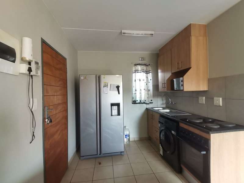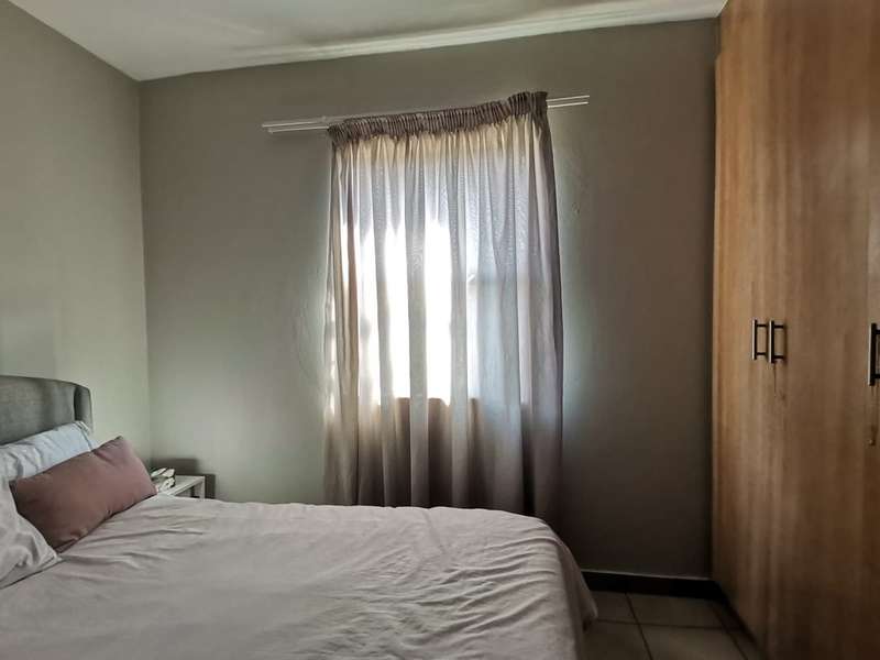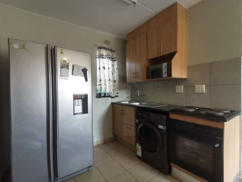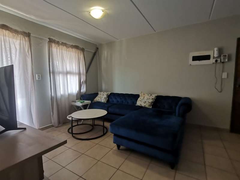 This well-managed and 24-hour surveillance complex offers a first-floor unit with a charming open-plan lounge and kitchen, complete with ample built-in cupboards and a fitted stove with oven, leading to the balcony with views. There are 2 tiled bedrooms with built-in cupboards and 1 bathroom with toilet, basin and bath with a shower inside the bath. The home offers plenty of natural sunlight and stunning views. Complete with 1 carport and visitors' parking. Well secure and located near high and primary schools, shopping malls, churches, and offering easy access to major highways. Don't miss out – arrange a private viewing today!!