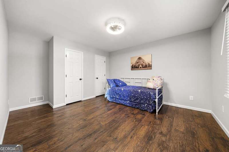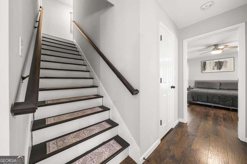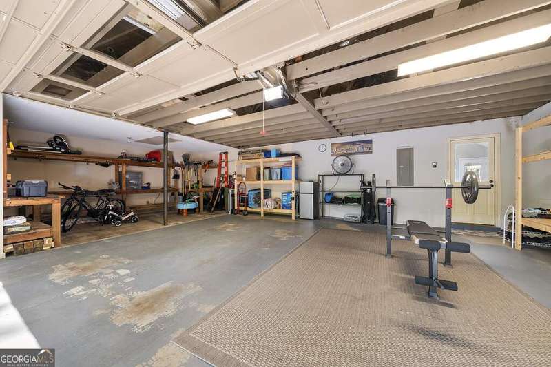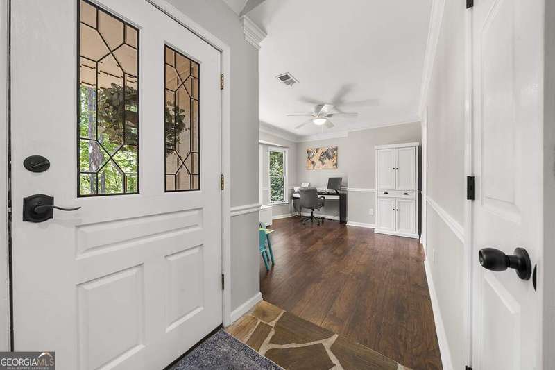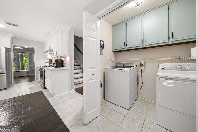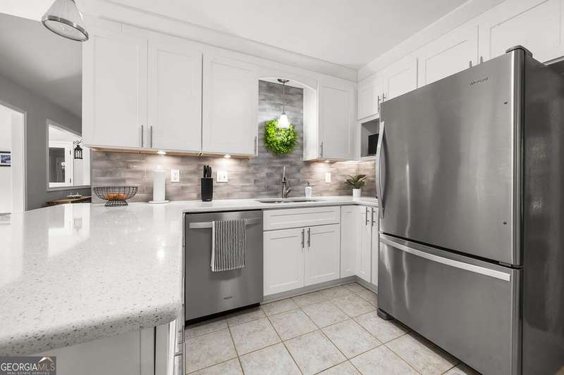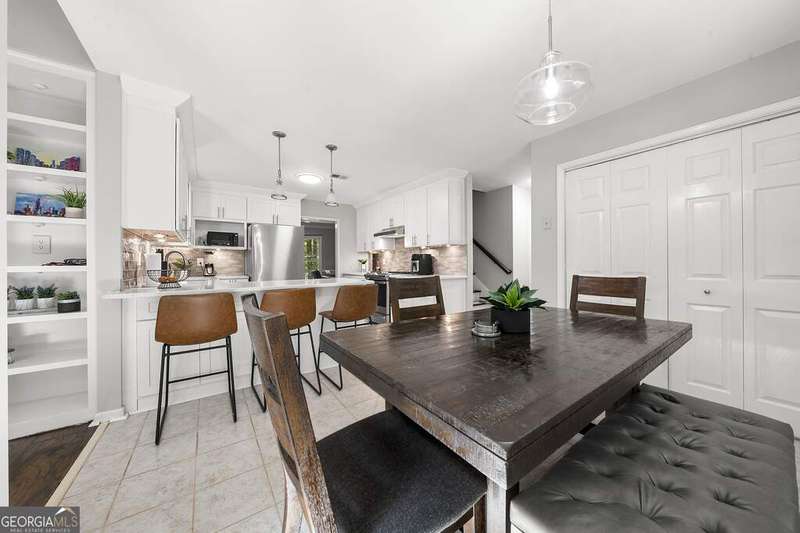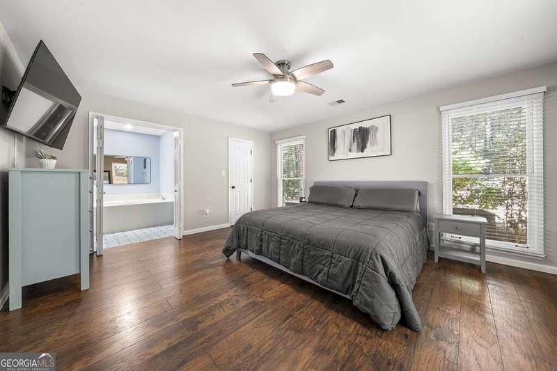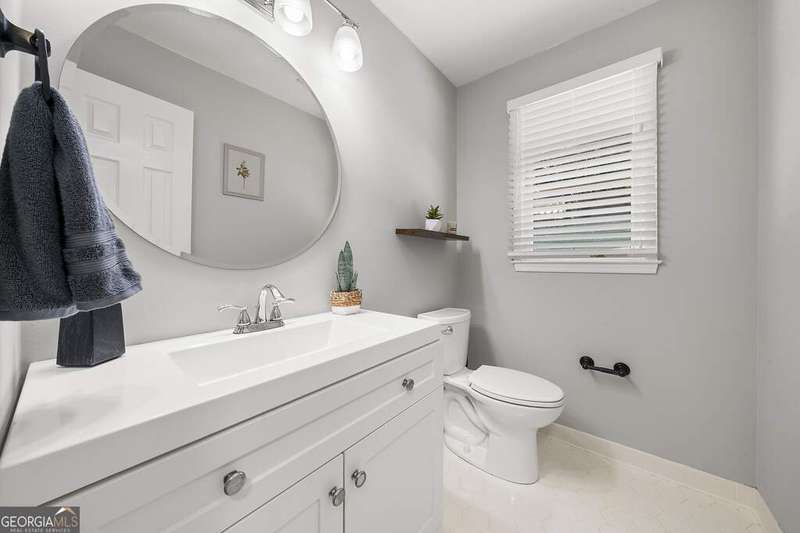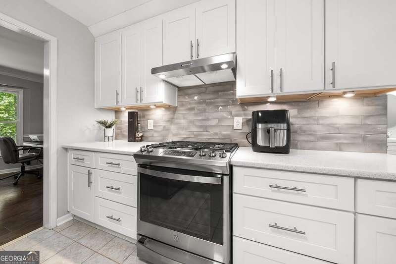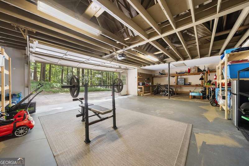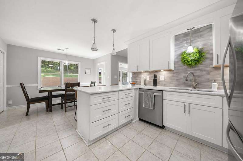 Welcome to this inviting home tucked among the trees in the wonderful community of Tyrone! Charming standalone lamp posts frame the front, while the spacious porch is perfect for enjoying your morning coffee. Step inside to find the vaulted family room with fireplace just to the right of the entry, and the dining room (also ideal as a home office) to the left, both with serene views of mature trees. The updated kitchen features crisp white cabinetry, stainless steel appliances including a gas range, under-cabinet lighting, and a classic tile backsplash. A cozy den filled with windows overlooks the backyard, while down the hall you'll find an updated half bath and the main-level primary suite. The primary bedroom includes a walk-in closet and an en suite bath with a dual sink vanity, a large whirlpool tub, and a separate shower. Upstairs offers two comfortably sized bedrooms and a full bath. Step outside to discover a backyard designed for relaxation and entertaining with a tiled patio, freestanding swings, a gazebo with seating, a terraced yard, and a storage shed. The oversized attached garage provides a workbench and sturdy built-in shelving for all your storage needs. Conveniently located just minutes from shopping, dining, and parks, with easy access to the Atlanta airport, this home combines privacy, comfort, and convenience. Don't miss the video tour!