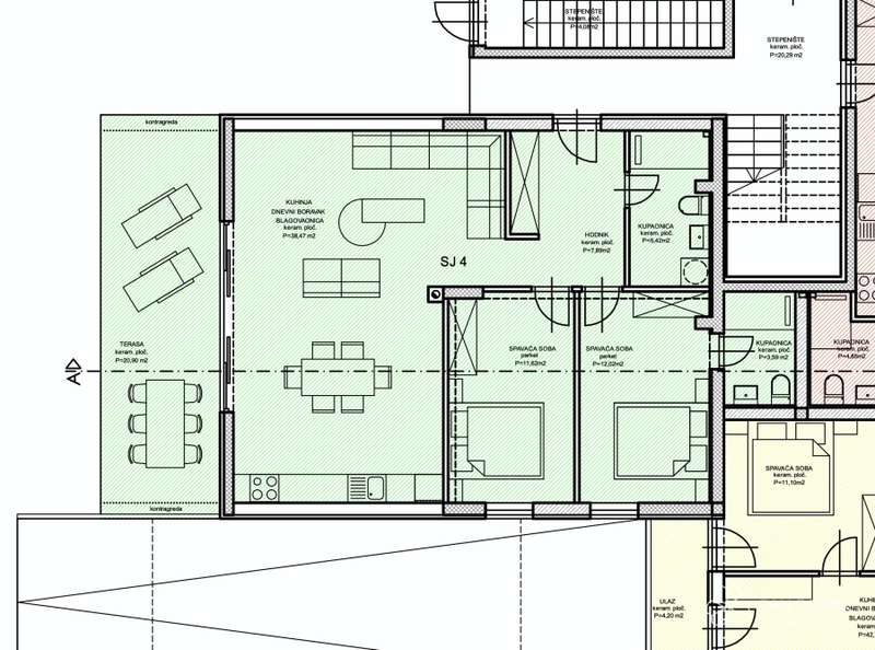 The building consists of a basement with garages and storage areas, providing residents with practical parking solutions and additional storage space. The ground-floor apartments have the advantage of their own garden, ideal for relaxing outdoors. On the first floor, the apartments feature spacious terraces and balconies that offer excellent views and space for socializing, while the second-floor apartments, in addition to terraces, have access to impressive rooftop terraces, adding a special charm and exclusivity.